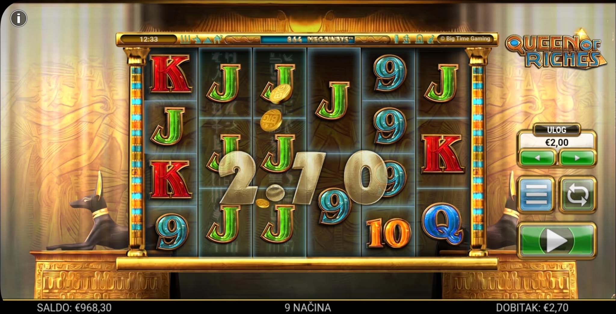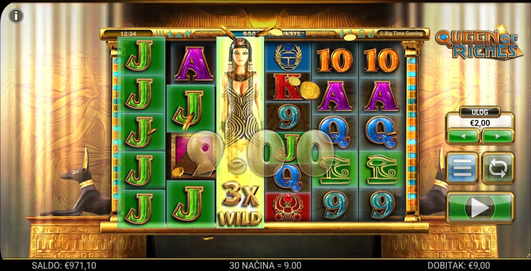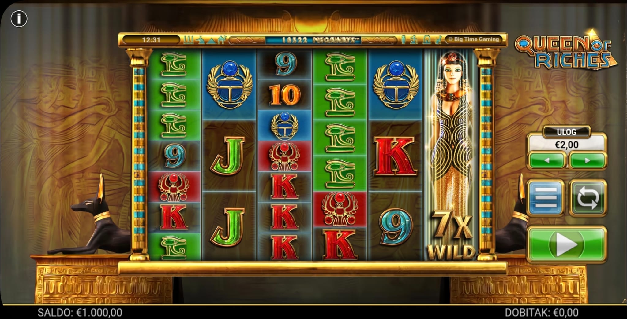 Igra Queen of Riches ima RTP od 96.90%, što je iznimno visoka vrijednost u usporedbi s prosjekom. Zbog volatilnog Megaways formata i moćne klonirane značajke s množiteljima, volatilnost ove igre je visoka.