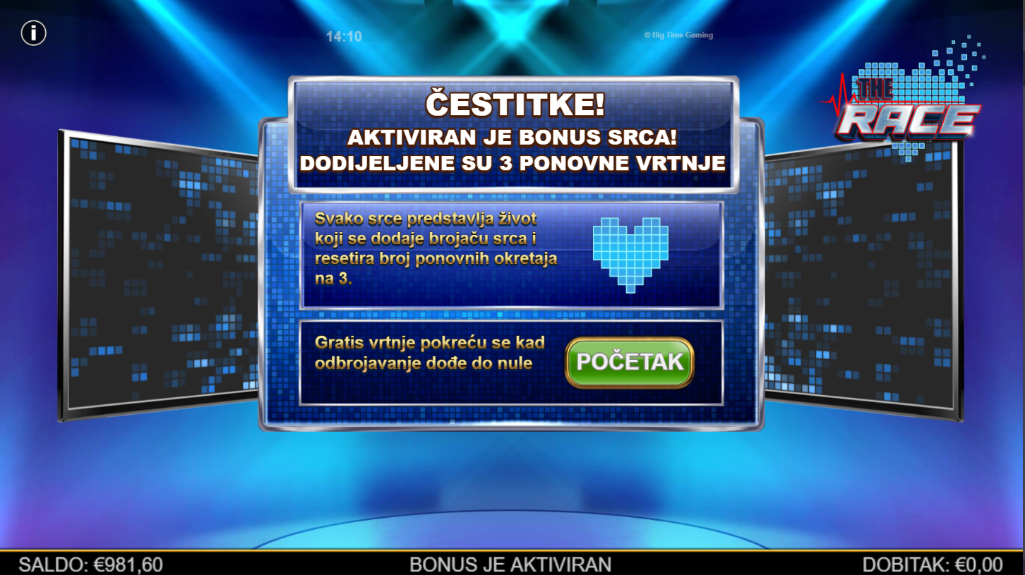 4. Koji su minimalni i maksimalni ulozi u igri The Race?