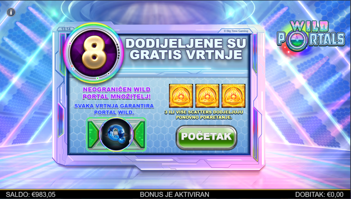 4. Koji su minimalni i maksimalni ulozi u igri Wild Portals?