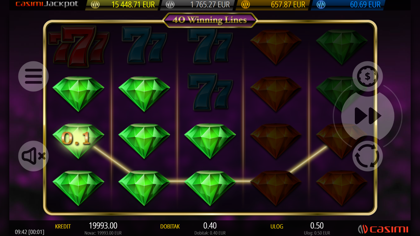 Minimalni ulog je 0,10€ , a maksimalni ulog iznosi 70€.