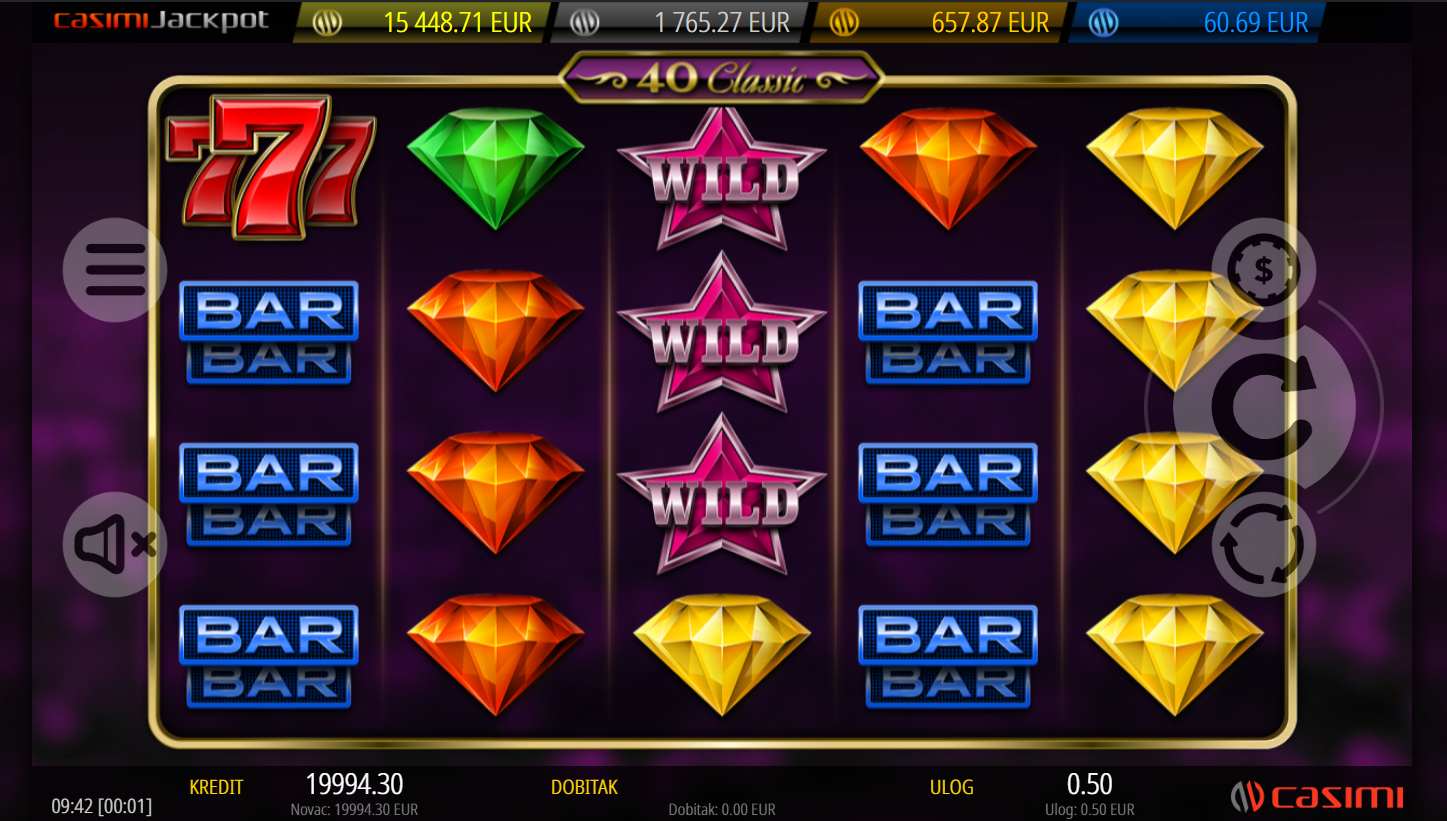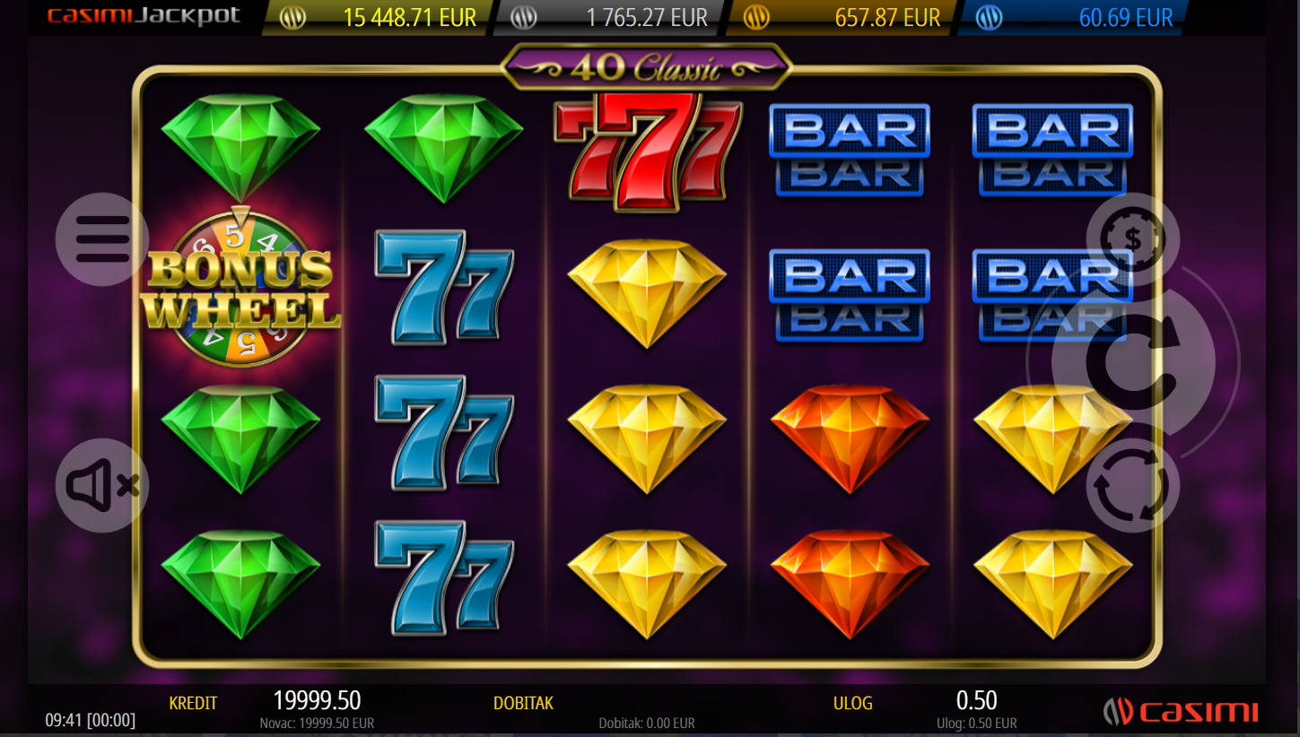 40 Classic i Casimi donose pravi retro slot doživljaj u modernom izdanju s 5 koluta i 40 linija. Voćni simboli, zvonca i sedmice vraćaju nostalgiju, dok bonus kotač i wildovi dodaju eksploziju uzbuđenja. Svaka vrtnja donosi priliku za klasične, ali i iznenađujuće velike dobitke. To je savršen spoj stare škole i moderne slot dinamike.