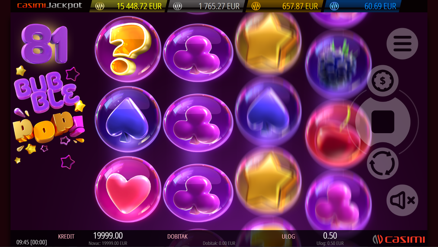 Vrti 3 koluta i ciljaj na voćne simbole na dobitnim linijama. Pravila su jednostavna, pa možeš odmah uskočiti u akciju. Zabava se vrti brzo, a svaki spin pruža priliku za sočne dobitke. 81 Bubble Pop je lagan, dinamičan i neprestano zabavan.