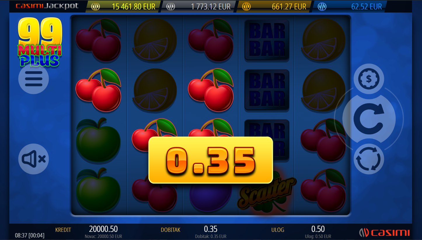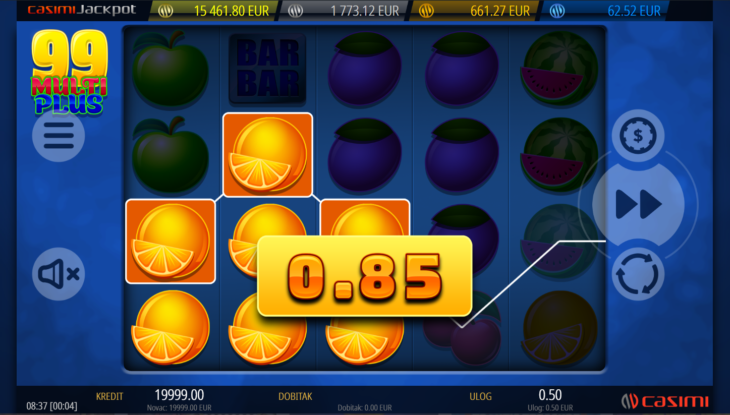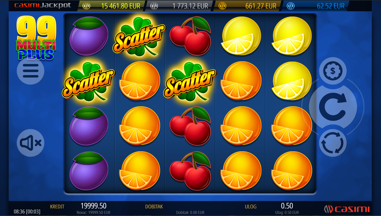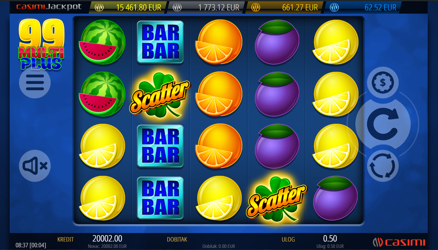 99 Multi Plus i Casimi donose još više voćne zabave na 5 koluta i 4 reda s čak 99 isplatnih linija. Klasični retro simboli voća kombiniraju se s modernim Wild značajkama koje osiguravaju dinamičan gameplay. Svaka vrtnja pruža mnoštvo prilika za pogodak, a igra odiše klasičnim šarmom uz dodatni plus u uzbuđenju. Idealna je za sve koji vole puno linija i stalnu akciju.
