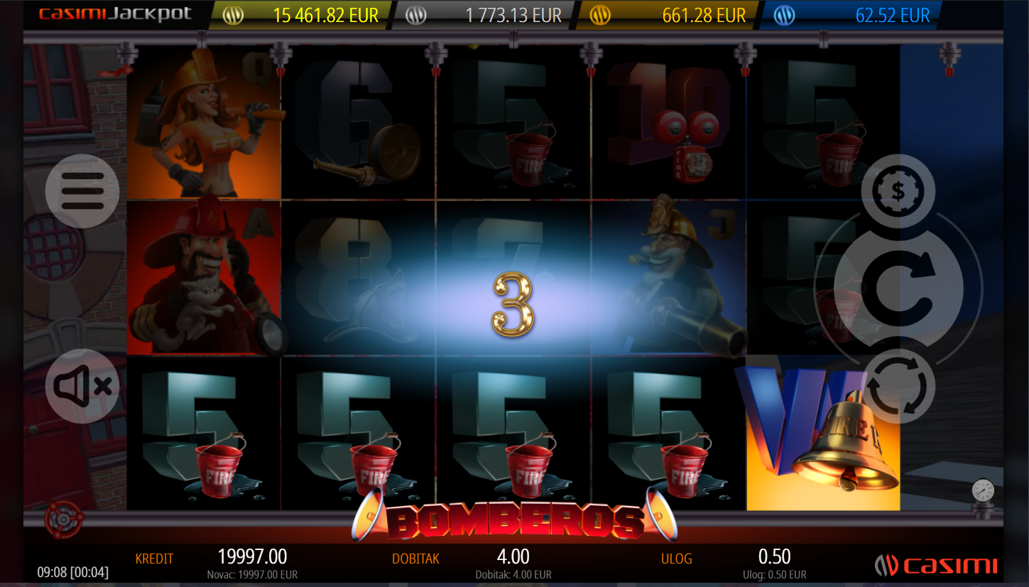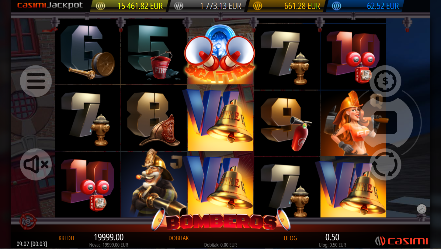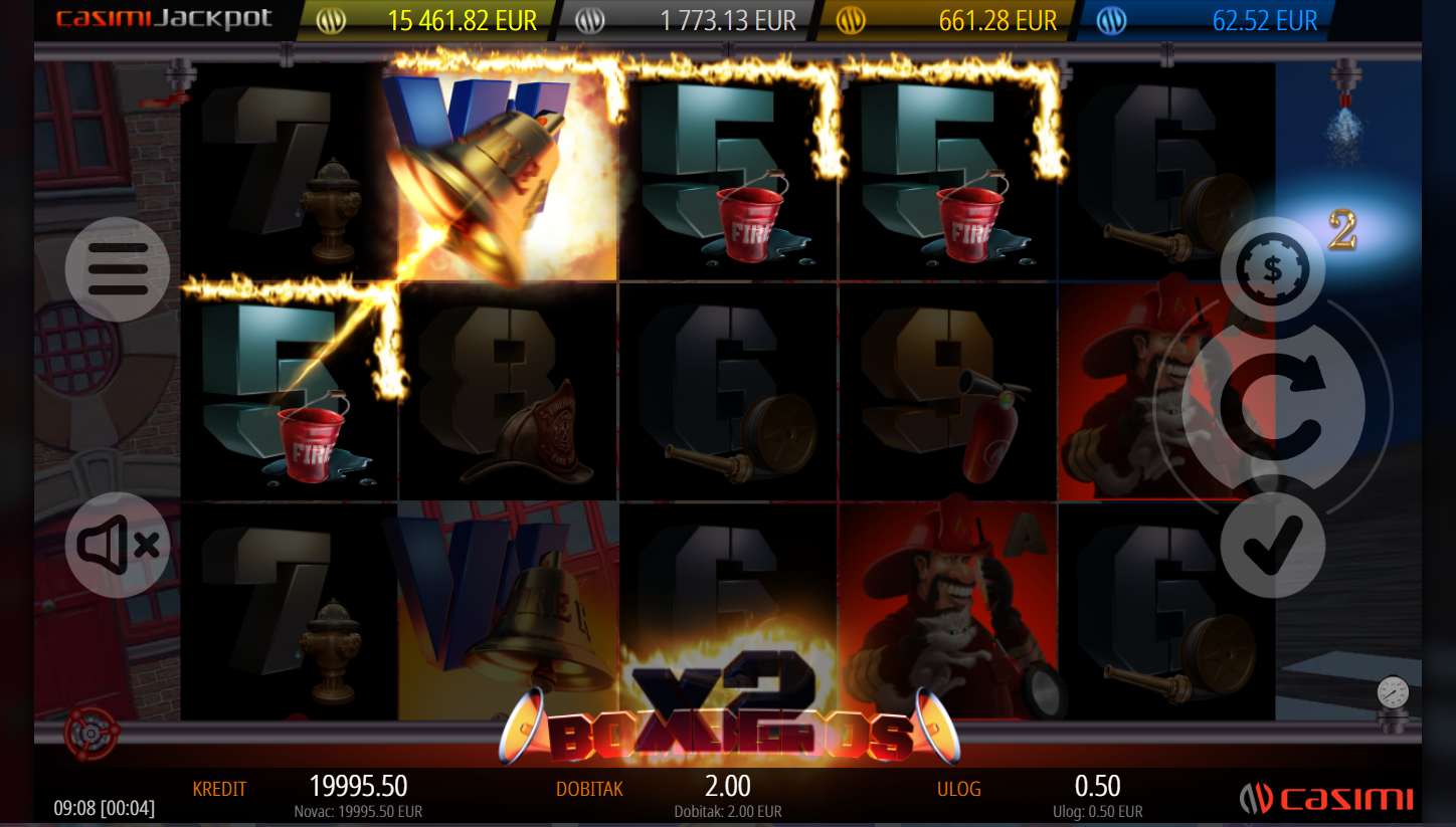 Bomberos i Casimi donose eksplozivnu akciju na 5 koluta i 20 fiksnih linija. Inspirirana vatrogasnim temama, igra je puna vatre, sirena i adrenalinskih trenutaka. Posebne značajke poput Multiplying Wild simbola i Free Spins runde osiguravaju napetost u svakoj vrtnji. Svaki spin može buknuti u vatromet dobitaka do 500 puta uloga!
