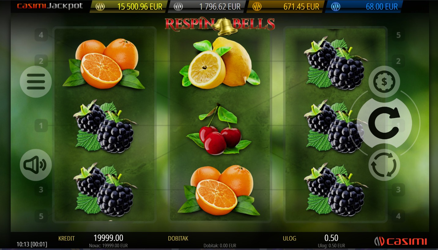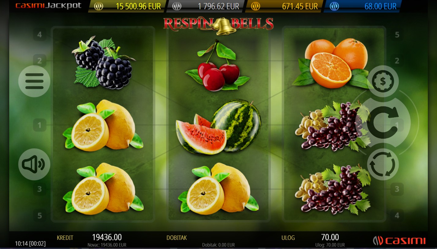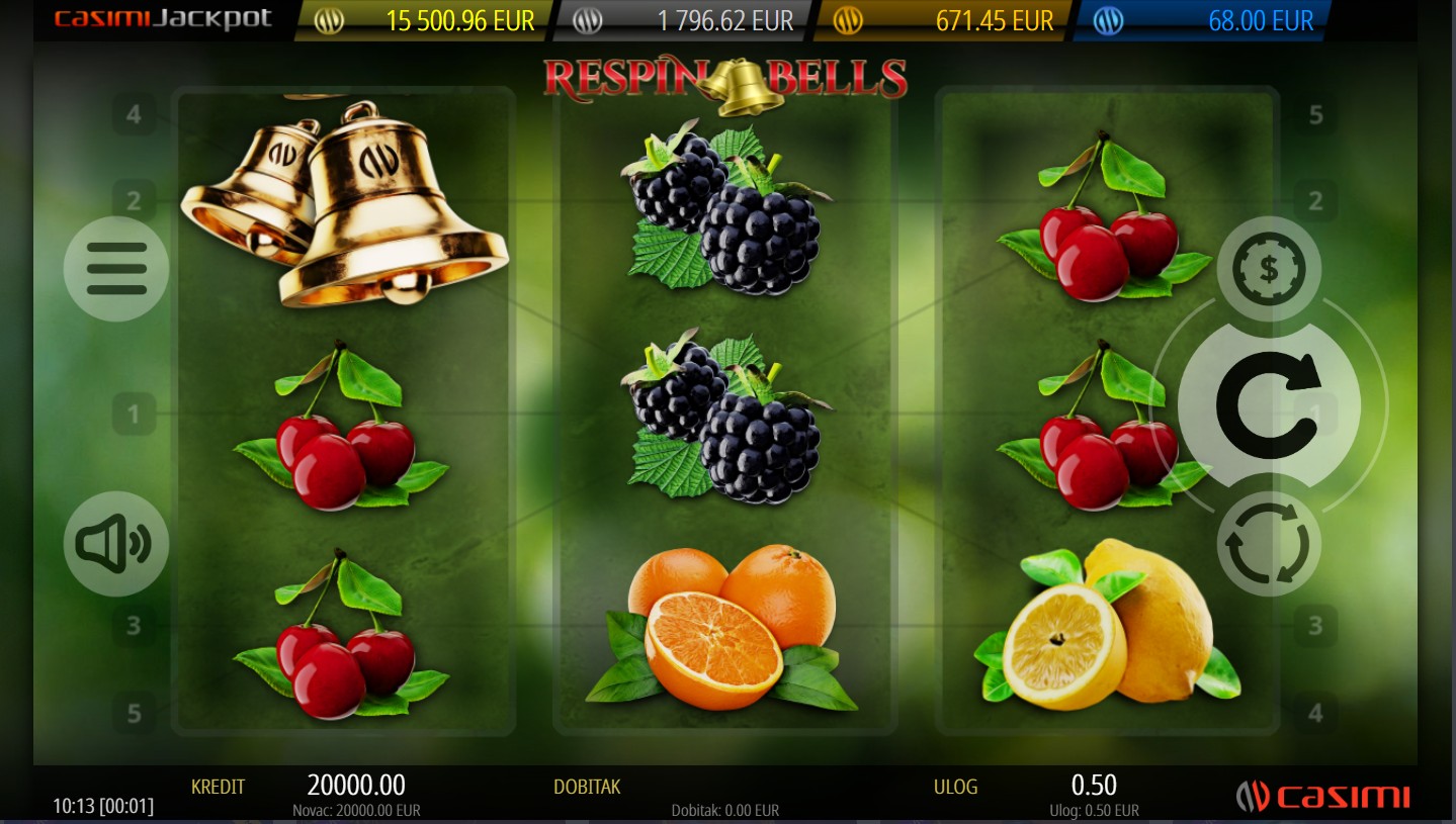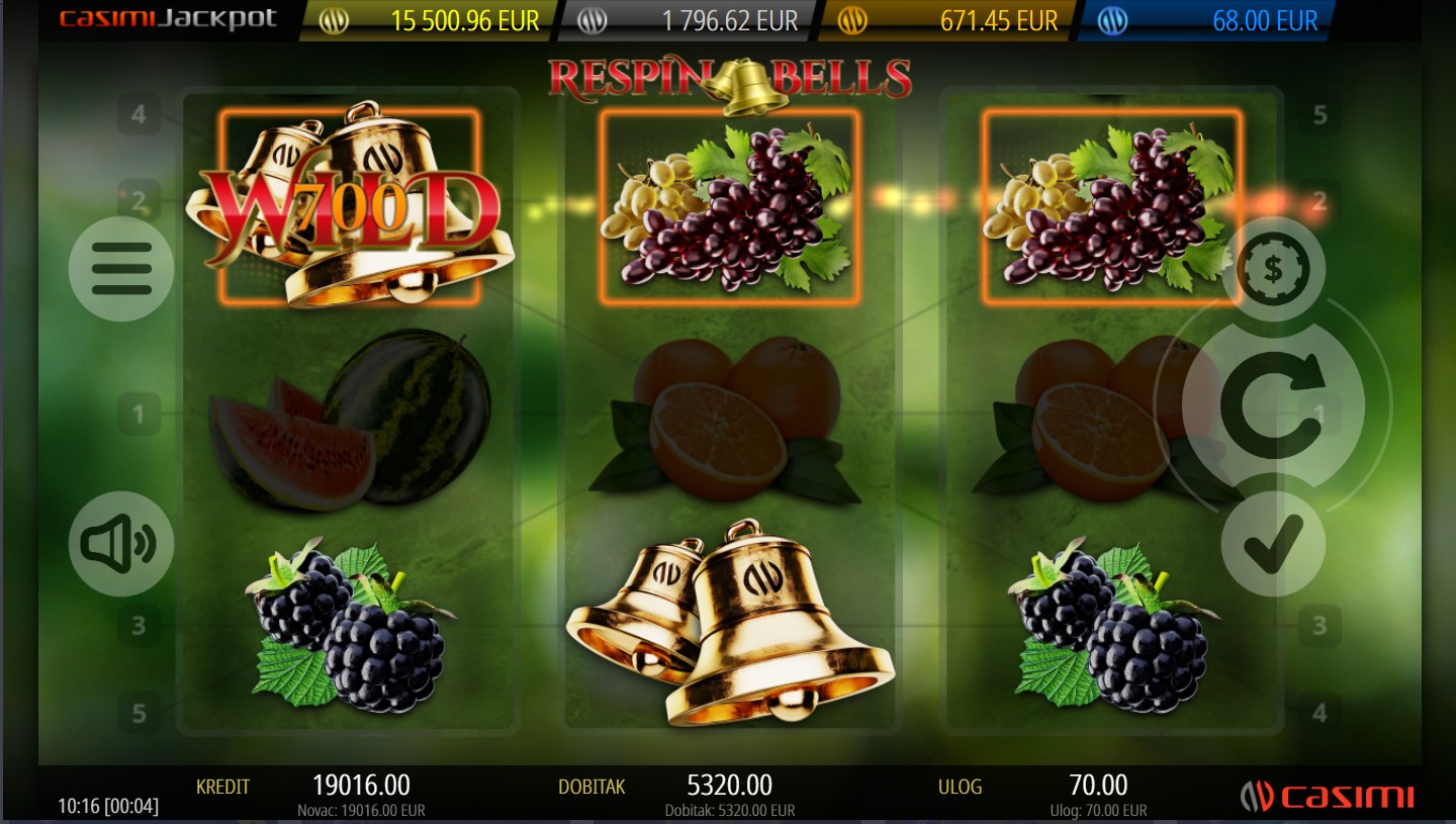 Respin Bells donosi klasični voćni svijet uz moderni zaokret i uzbudljive značajke! Ova dinamična slot igra providera Casimi nudi šarene voćne simbole, ali uz dodatnu dozu napetosti zahvaljujući posebnoj Respin funkciji koja svaki dobitak može pretvoriti u još veću zabavu. Za još više uzbuđenja tu je i mogućnost osvajanja bogatog jackpota, kao i udvostručavanja iznosa. Respin Bells donosi savršen spoj nostalgije i moderne značajke,pa je savršena igra za sve ljubitelje klasičnih simbola s modernim zaokretom.