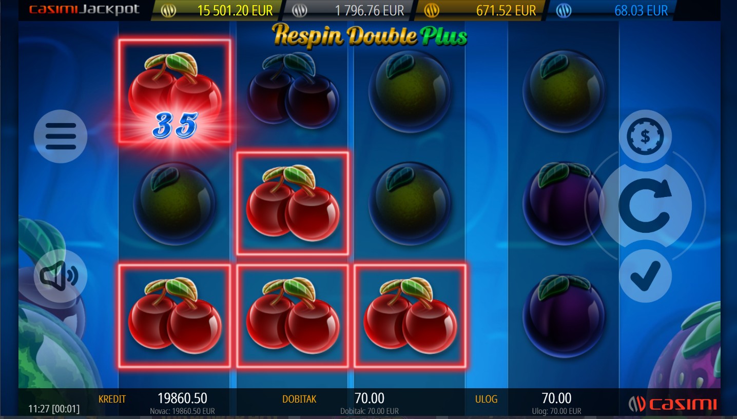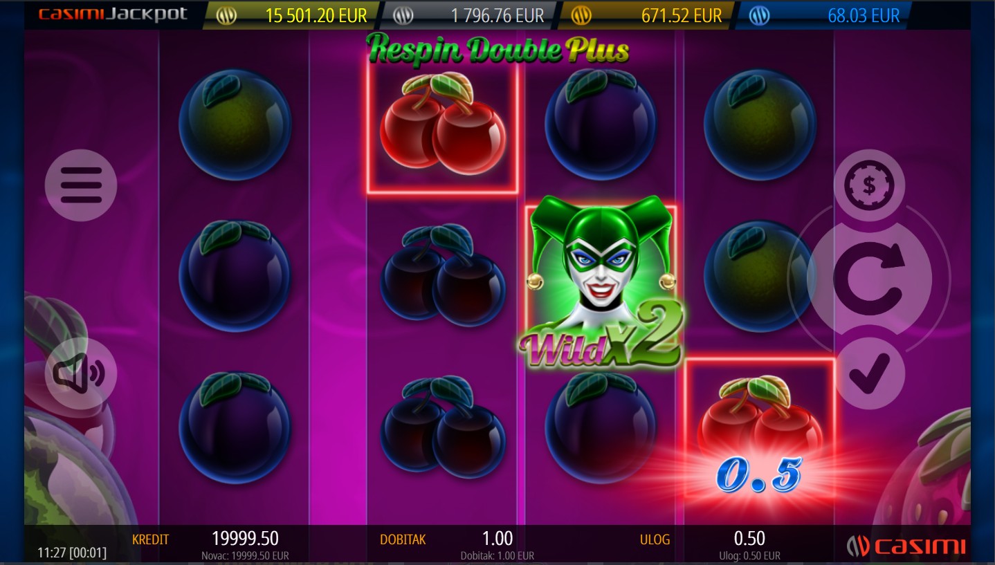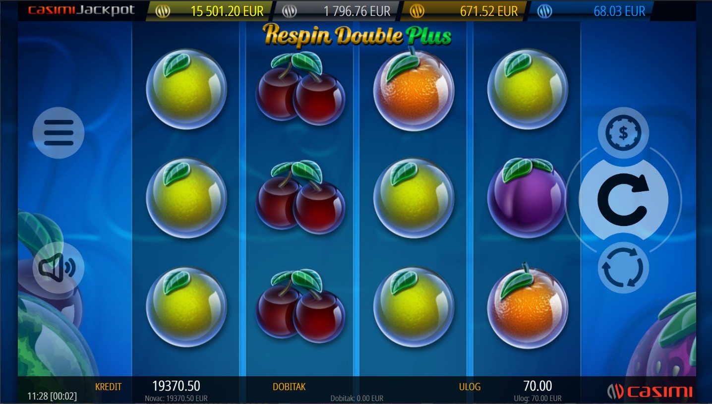 Respin Double Plus igra se na 4 valjka i 3 reda s 5 fiksnih isplatnih linija. Cilj je složiti odgovarajuće simbole na aktivnim linijama i tako ostvariti dobitne kombinacije. Nakon svake dobitne kombinacije može se aktivirati Respin značajka koja ponovno zavrti valjke i donosi dodatne prilike. Upravo taj “plus” u nazivu označava još veću dozu uzbuđenja, jer svaka nova vrtnja može otvoriti put prema uzbudljivim iznenađenjima uključujući i bogati jackpot.