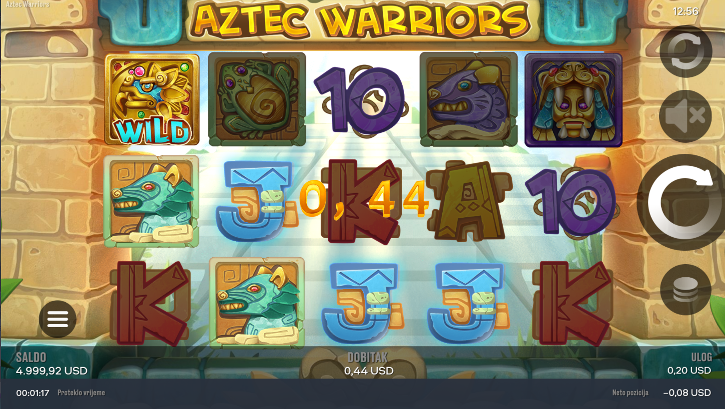 RTP u Aztec Warriors iznosi oko 95.07%. Volatilnost je srednja, pa igra nudi česte manje isplate uz povremene veće eksplozije dobitaka. Savršeno balansirana, ova igra pruža i zabavu i potencijal za značajne dobitke.