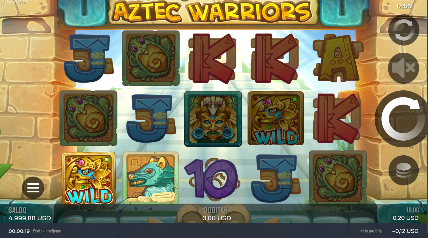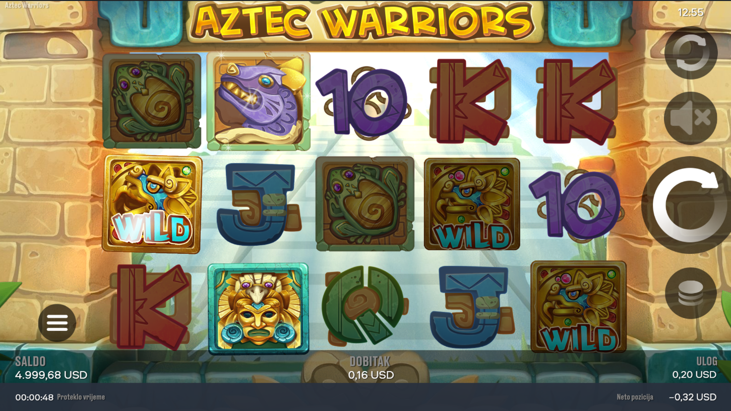 Aztec Warriors i Chilli Games te vode u srce džungle, gdje moćni ratnici i drevni bogovi čuvaju tajne nestale civilizacije. Na 5 koluta i 3 reda čeka te 20 isplatnih linija i prilika da otkriješ zlato Astečkog carstva. Simboli bogova, životinja i ratnika donose egzotičnu atmosferu, dok Wild i Scatter podižu uzbuđenje. Besplatni spinovi s multiplikatorima pretvaraju svaku vrtnju u pravu ekspediciju za blago!