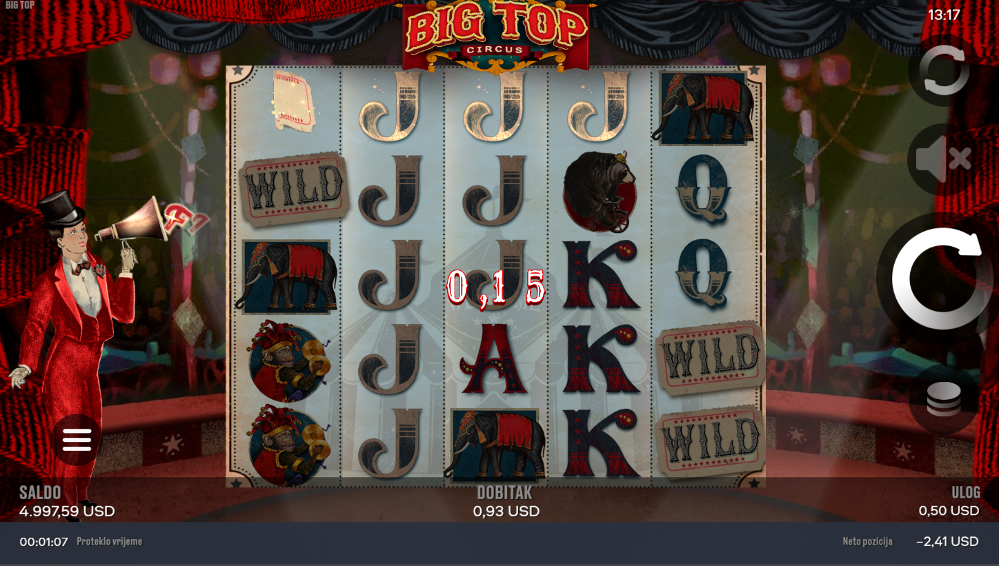 Igra je jednostavna, namjesti ulog, zavrti i čekaj da cirkuska čarolija počne. Kombinacije simbola donose nagrade, a posebni znakovi otvaraju dodatne mogućnosti za dobitke. Kontrole su pregledne i prilagođene i početnicima i iskusnim igračima. Svaki spin može biti tvoj ulaz u show iznenađenja!