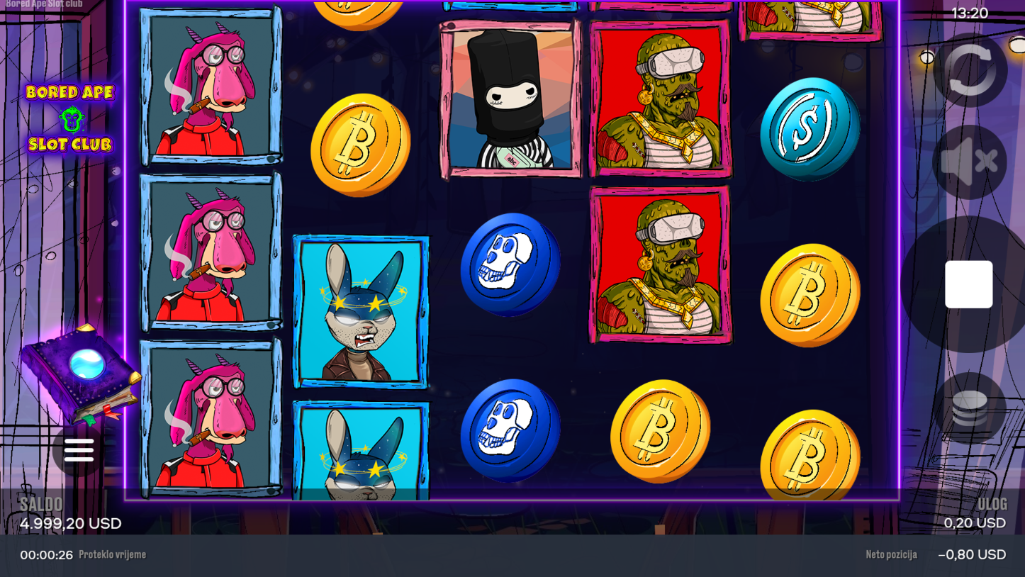 S RTP-om od 96.43%, Bored Ape Slot Club spada među isplativije slotove. Volatilnost je srednja, što znači dobar balans između sigurnijih i većih dobitaka. Igra nudi ritam koji je taman za duže sesije bez previše rizika. Ako voliš adrenalin, ali i stabilnost, ova kombinacija je pun pogodak.