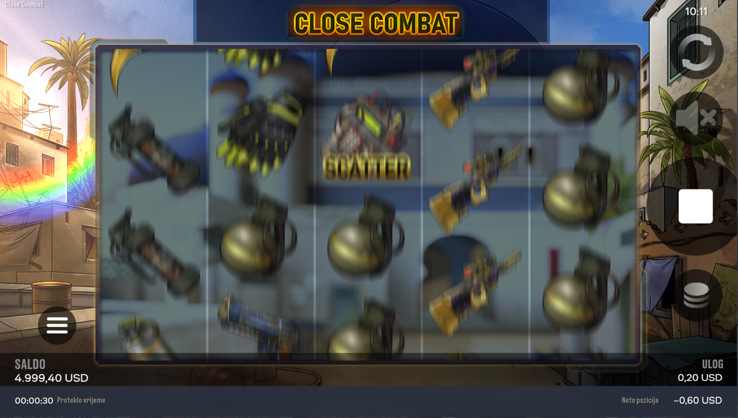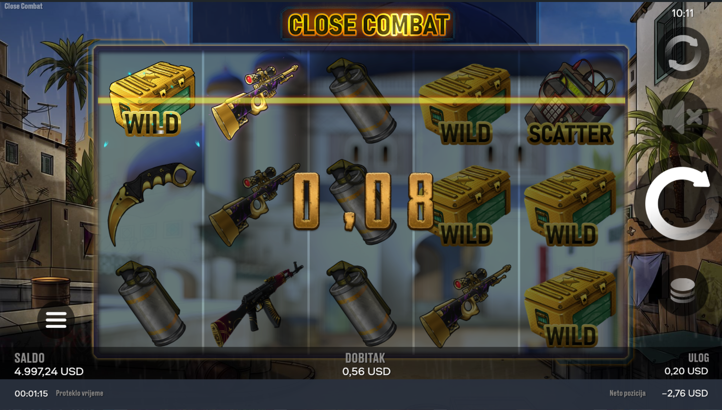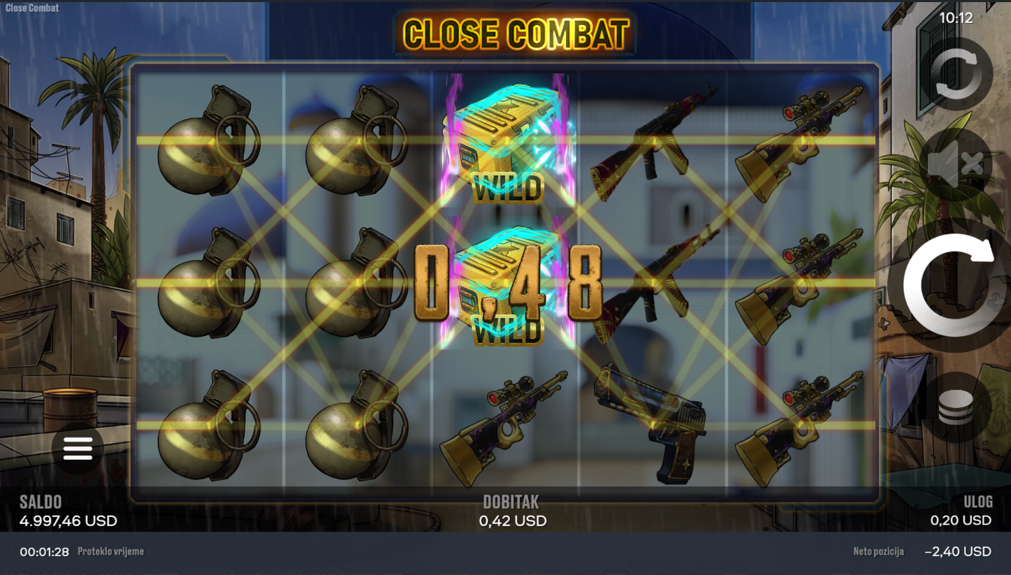 Close Combat, od Chilli Games, vodi te ravno na bojište! Na 5x3 bubnjeva i 20 linija isplate čeka te vojna akcija prepuna simbola oružja, vojnika i eksplozija. Atmosfera je napeta, a svaki spin djeluje kao nova misija. Ako voliš vojnu tematiku i adrenalinski naboj, ovo je pravi slot za tebe.