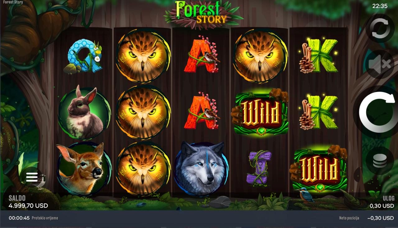 Forest Story igra se na 5 rola, a cilj je složiti iste simbole na aktivnim linijama počevši s lijeve strane kako bi se ostvarili dobitci. Simboli inspirirani šumskim elementima i životinjama donose razne razine nagrada, dok jednostavna pravila omogućuju brzo i intuitivno igranje. Postavi željeni ulog, zavrti role i prepusti se šumskim pričama punim mogućnosti za dobitke!