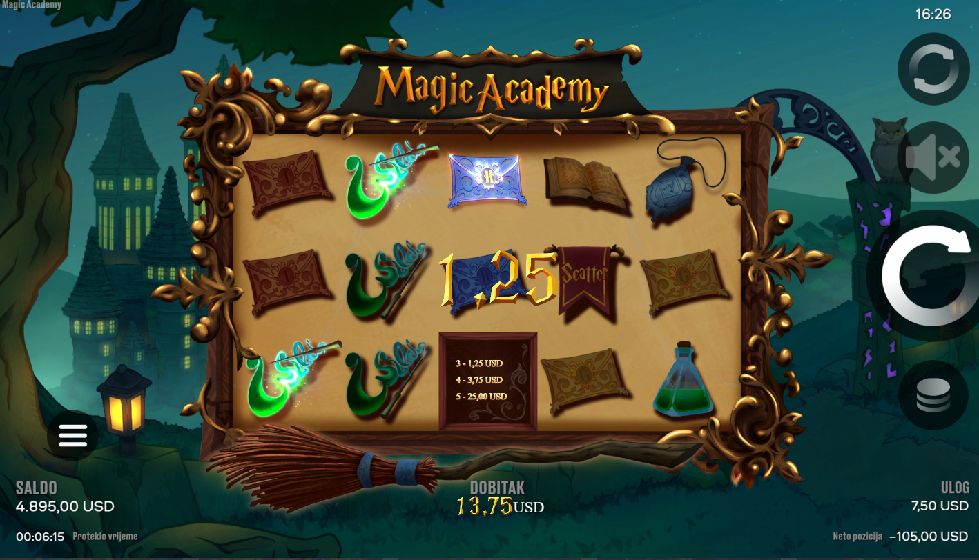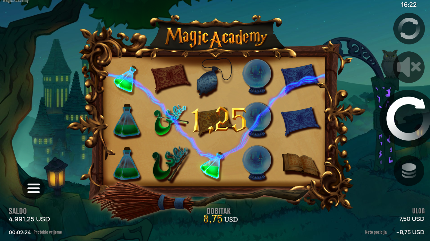 Magic Academy od Chilli Games donosi svijet čaranja i misterioznih formula. Ovo je slot igra koja vodi u školu magije punu čudnovatih simbola i misterioznih rituala. Dizajn je šaren, s mističnim dodirom i simbolima poput knjiga, čarobnih štapova i svetih kristala. Atmosfera je očaravajuća - grafika i animacije uvlače u ugođaj pouke čarobnjaštva. Svaki spin otvara novu školsku lekciju iz svjetova koji skrivaju drevne moći!