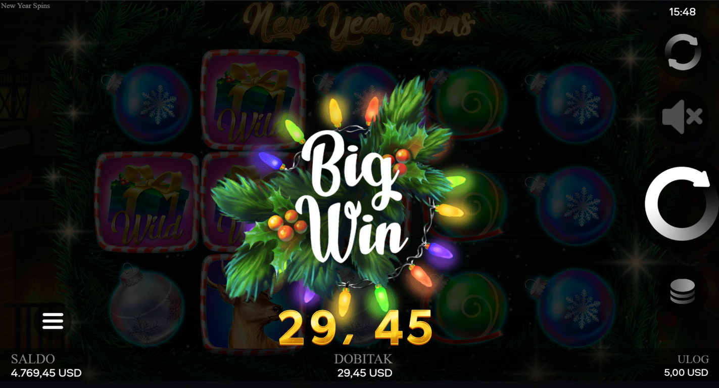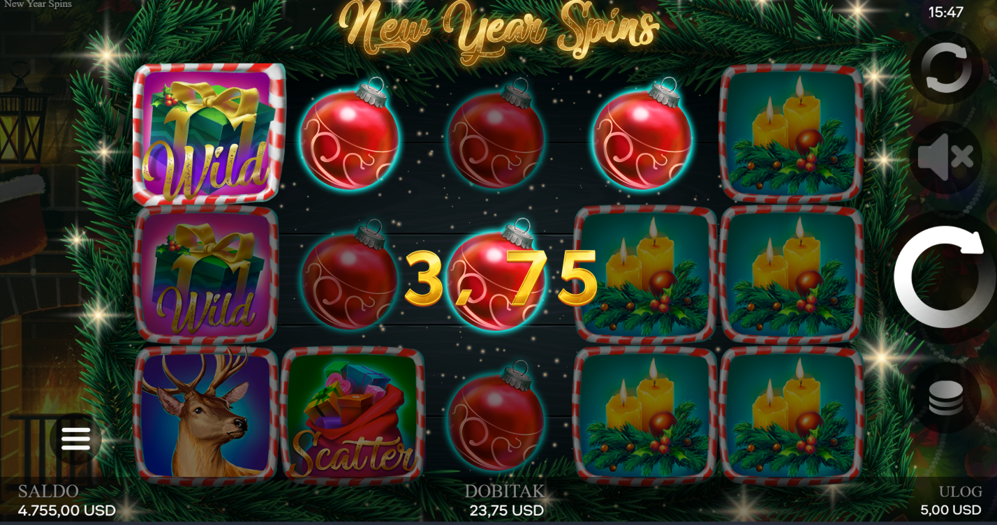New Year Spins od Chilli Games donosi veseli ambijent Nove godine uz mnoštvo blagdanskih ukrasa, vatrometa, lampica. Svaka vrtnja ispunjena je svečanim simbolima i šarenim animacijama koje prizivaju osjećaj slavlja. Glazba i efekti dodatno pojačavaju dojam veselja i stvaraju uzbudljivo iskustvo! Ova igra idealna je za sve koji vole tematiku proslava i bogatu grafiku. Jednostavan, ali privlačan dizajn čini je i odličnim izborom i za početnike i za iskusne igrače!