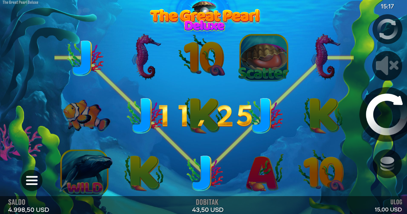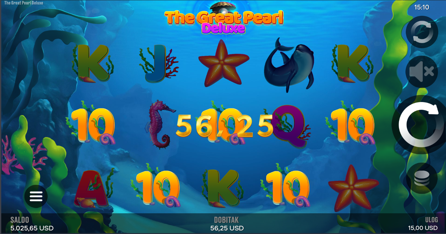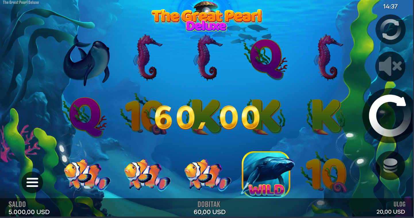 The Great Pearl Deluxe od Chilli Games donosi čaroban podvodni svijet s biserom koji sjaju na dnu mora. Ova slot igra puna je morskih simbola, školjki, riba, bisera, koralja. Boje su bogate, animacije teku glatko, a pozadina dočarava dubinu oceana i tajanstvenu atmosferu. Svaki spin kao da otvara novo poglavlje morske priče- mirno, ali s osjećajem da nešto veliko može nastati! Igra balansira eleganciju s uzbuđenjem!