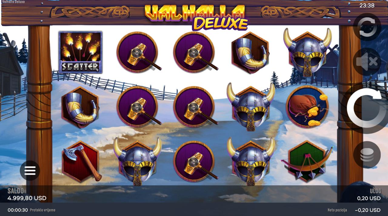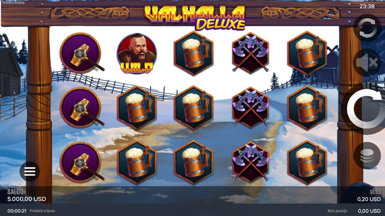 Valhalla Deluxe igra se na 5 rola, a cilj je složiti iste simbole na aktivnim linijama, počevši s lijeve strane, kako bi se ostvarili dobitci. Simboli inspirirani nordijskim mitovima donose razne razine nagrada, a jednostavna pravila omogućuju brzo i intuitivno igranje. Samo postavi željeni ulog, zavrti role i prepusti se epskom putovanju kroz legende i bogate kombinacije simbola!