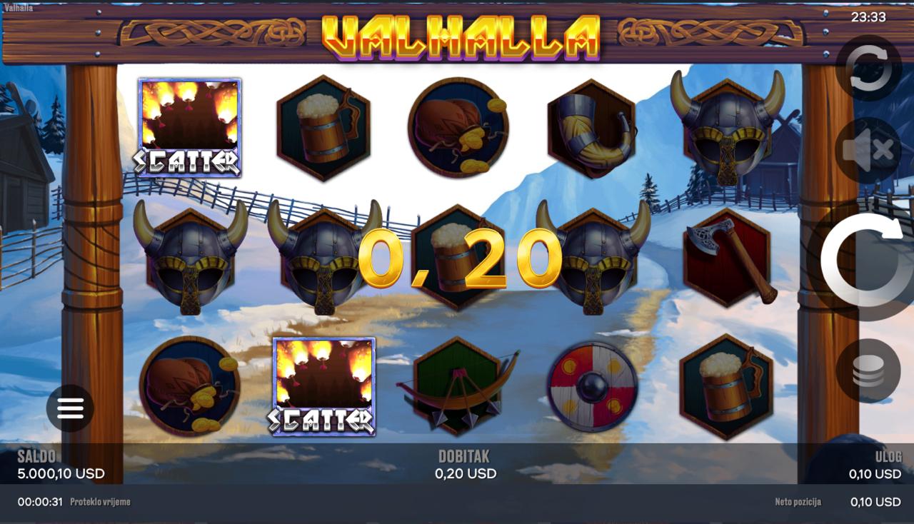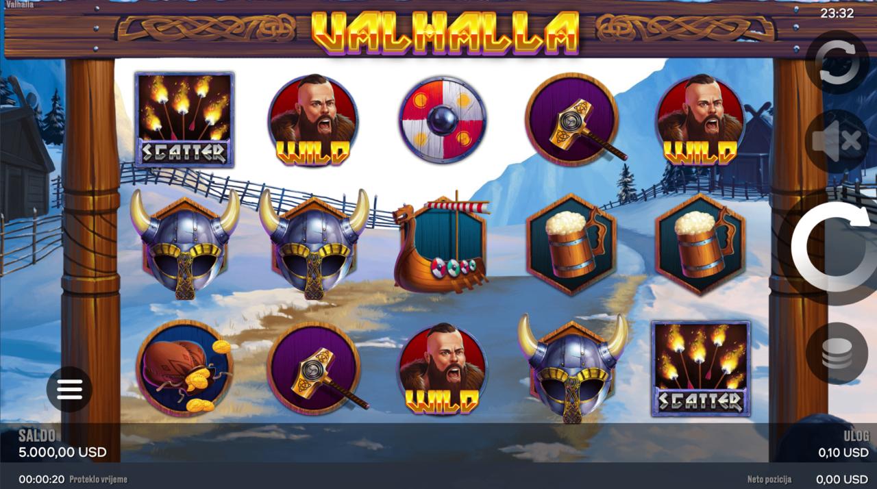 Valhalla igra se na 5 rola, a cilj je složiti iste simbole na aktivnim linijama, počevši s lijeve strane, kako bi se ostvarili dobitci. Simboli inspirirani nordijskim mitovima donose različite razine nagrada, dok jednostavna pravila omogućuju brzo i intuitivno igranje. Postavi željeni ulog, zavrti role i prepusti se epskom putovanju kroz legende i bogate kombinacije!