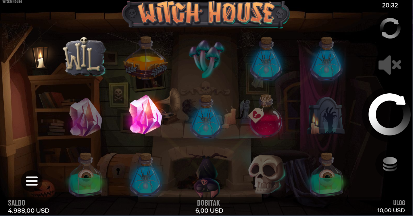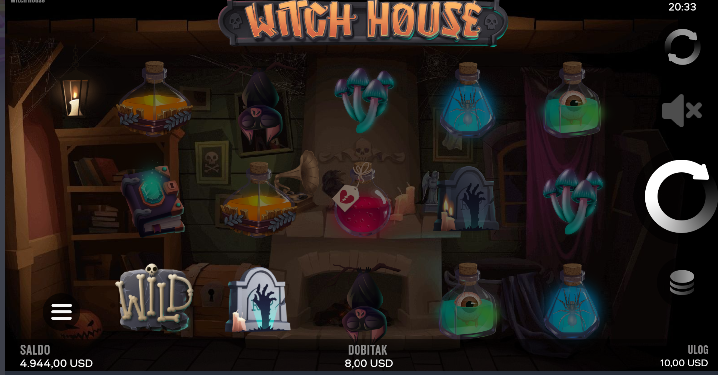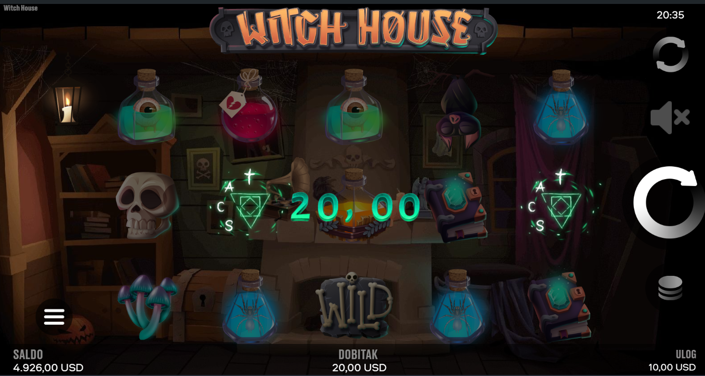Witch House od Chilli Games donosi sablasni svijet prepun vještica, bundeva i duhova. Sučelje je mračno, grafika i simboli u Halloween stilu pružaju jezovitu atmosferu, dok animacije i zvuk dodaju dozu tajne napetosti. Igra ima strukturu od pet kolona i tri reda te 20 isplatnih linija. Tu su WILD simboli i scatter simboli i značajka besplatnih vrtnji sa multiplikatorima u toj rundi!