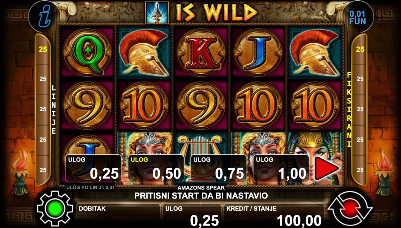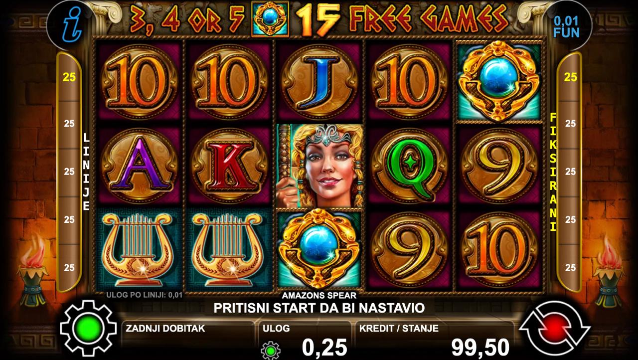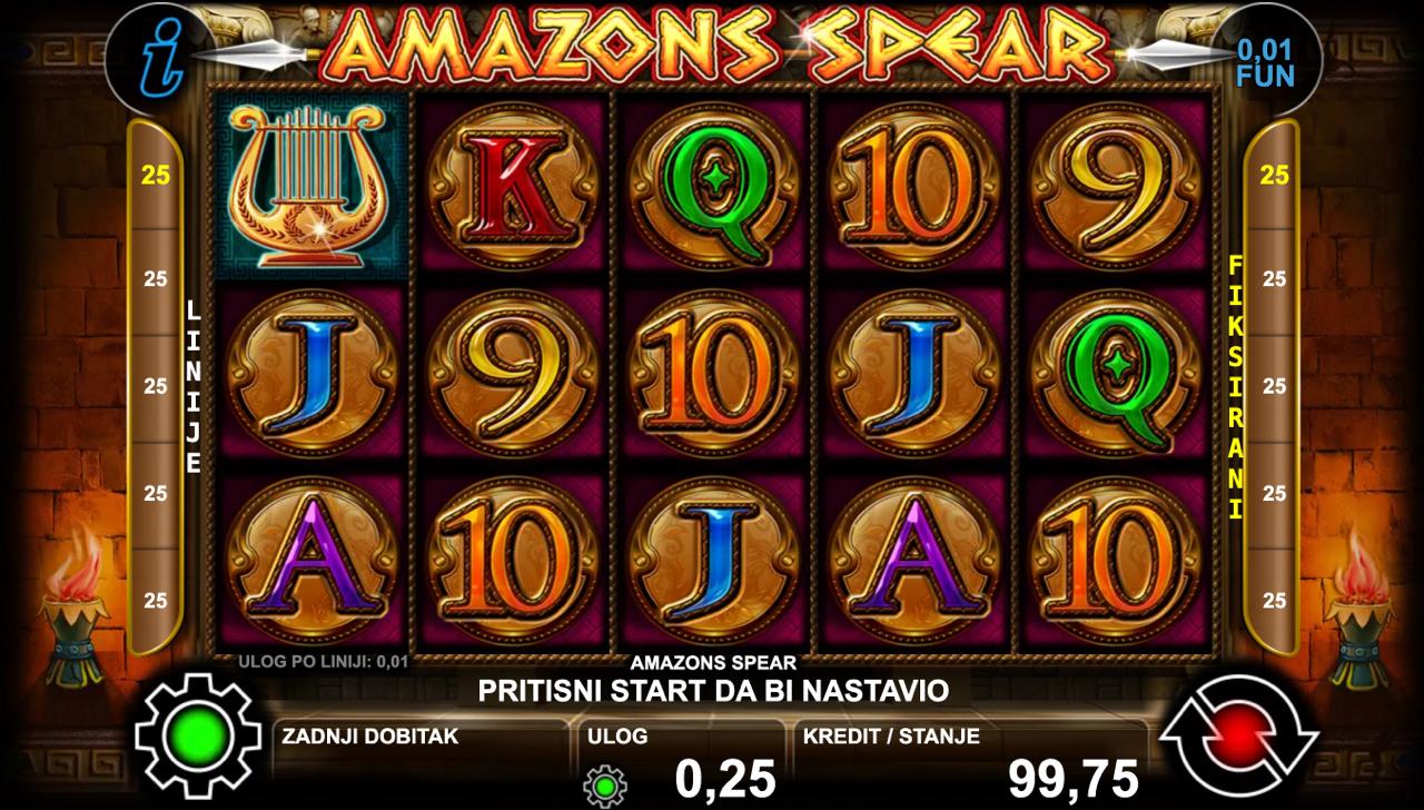 Amazons Spear igra se na 5 rola, a cilj je složiti iste simbole na aktivnim linijama, počevši s lijeve strane, kako bi se ostvarili dobitci. Simboli inspirirani temom drevnih ratnica i džungle donose različite razine nagrada, dok posebni simboli dodatno povećavaju šanse za uspješne kombinacije i pokretanje jackpot prilika. Postavi željeni ulog, zavrti role i prepusti se pustolovini u potrazi za blagoslovima džungle!