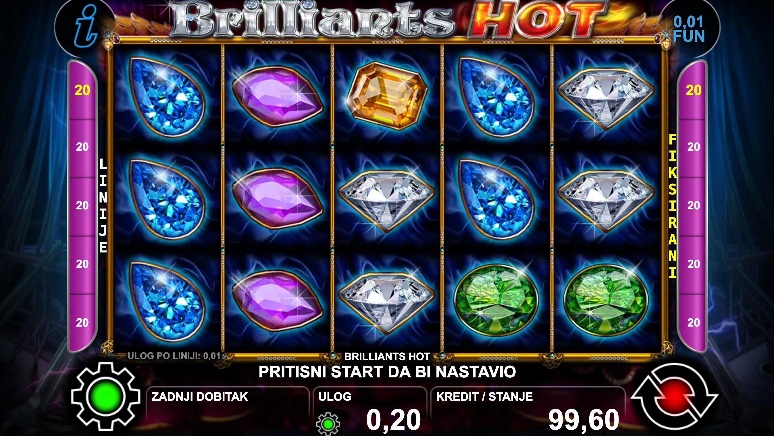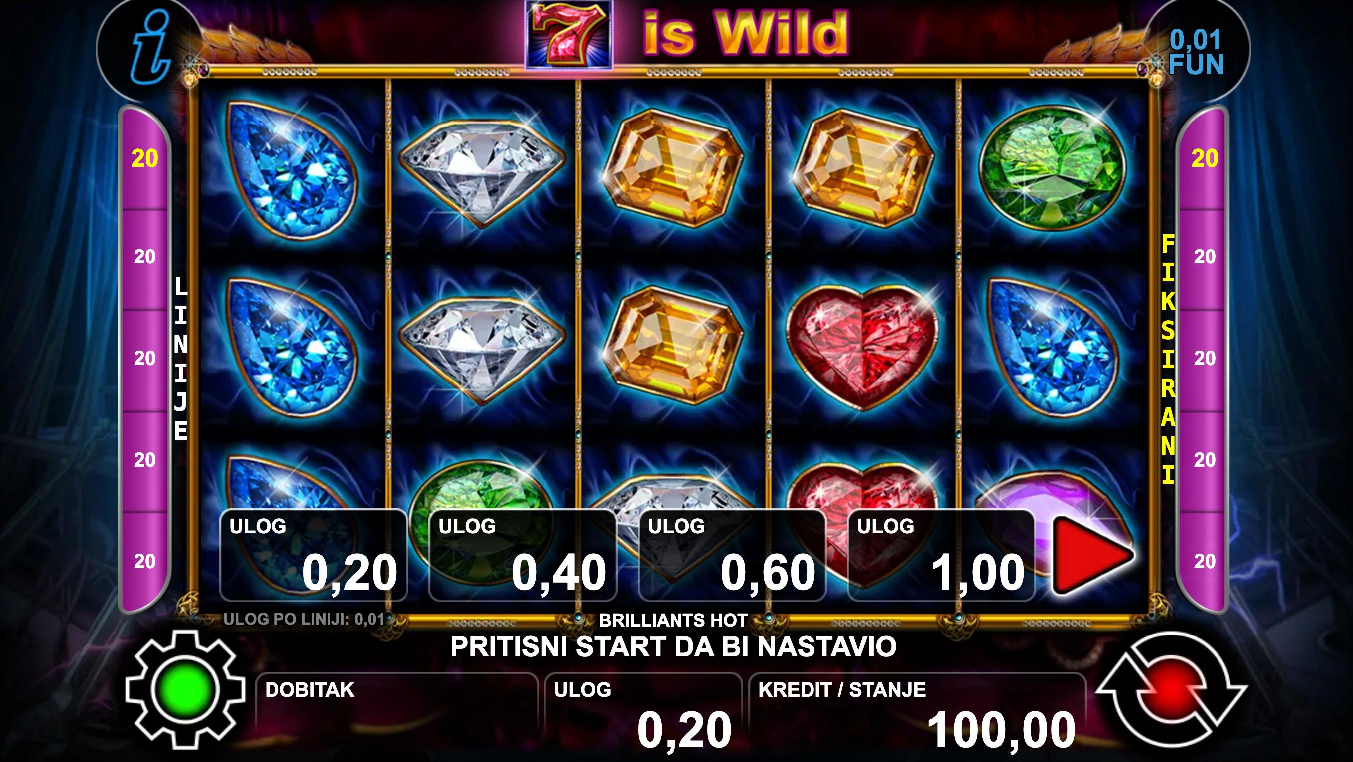 Odaberi ulog između 0,20 € i 20,00 € i pokreni kolute. Dobitne kombinacije ostvaruju se na fiksnim linijama slijeva na desno. Simbol „Brilliant” ili džoker zamjenjuje ostale simbole i pomaže u stvaranju dobitaka. Cilj je složiti što bolje kombinacije uz što manji ulog.