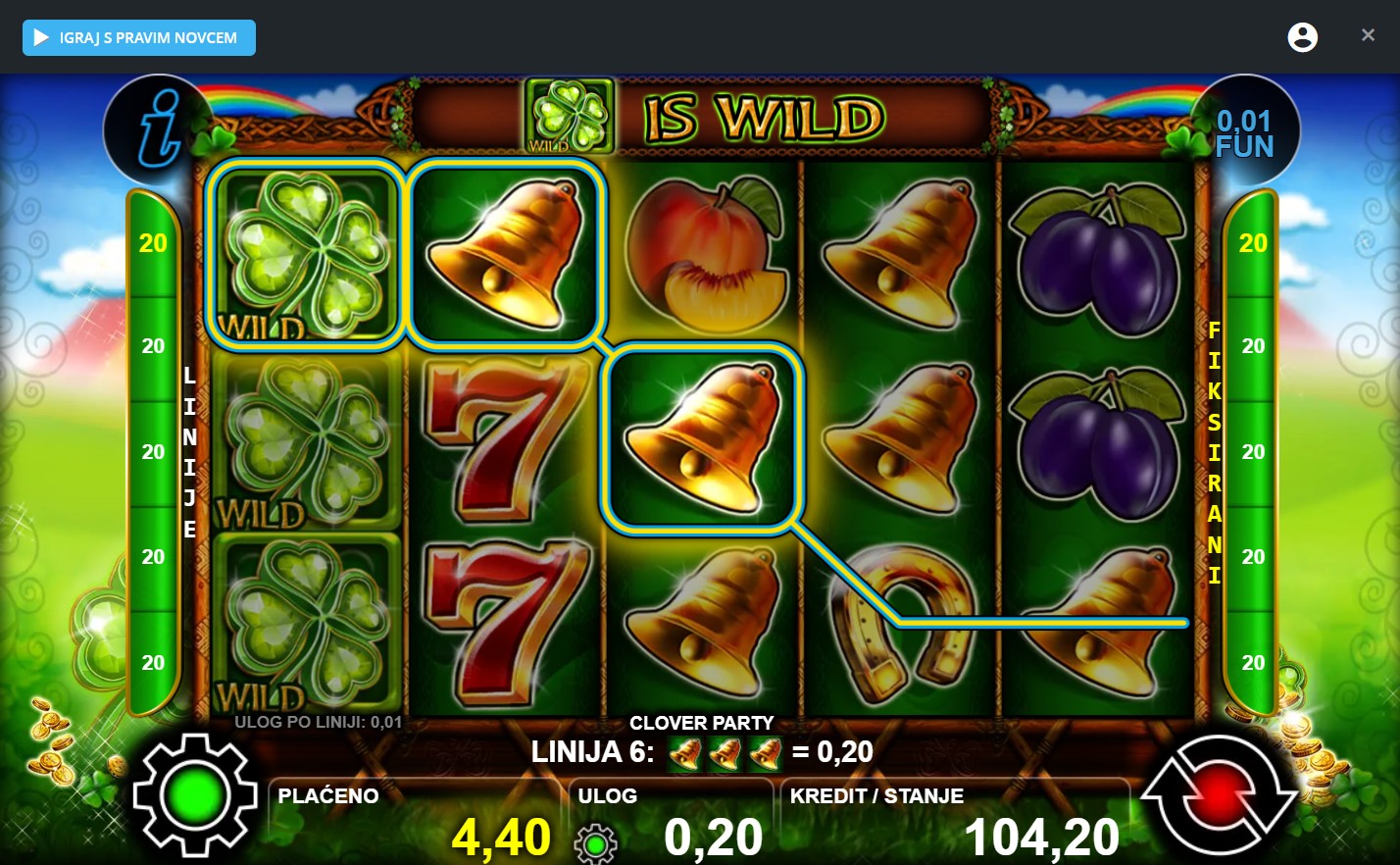 Minimalni ulog iznosi 0,20€, dok je maksimalni 20€.
