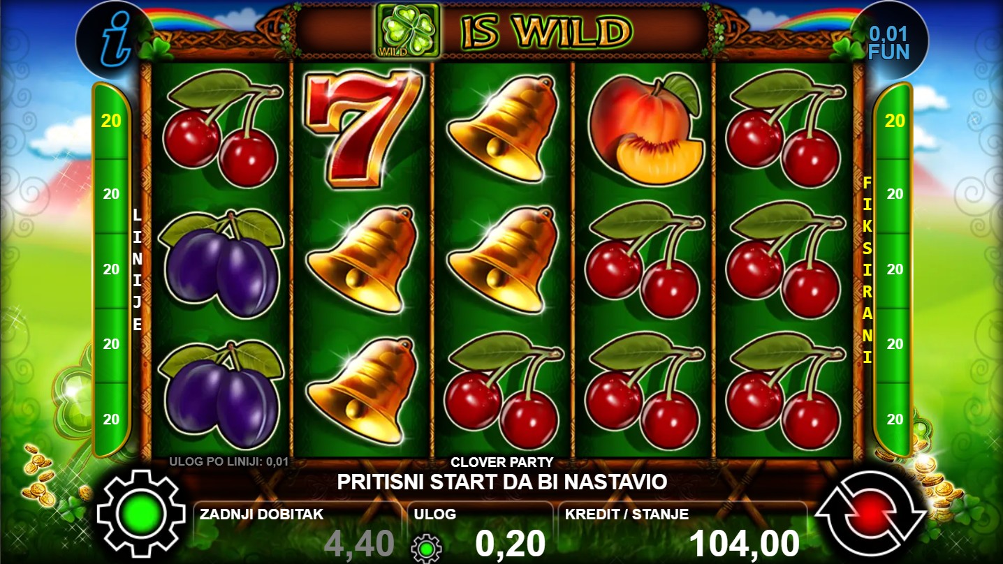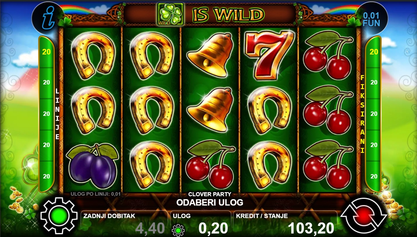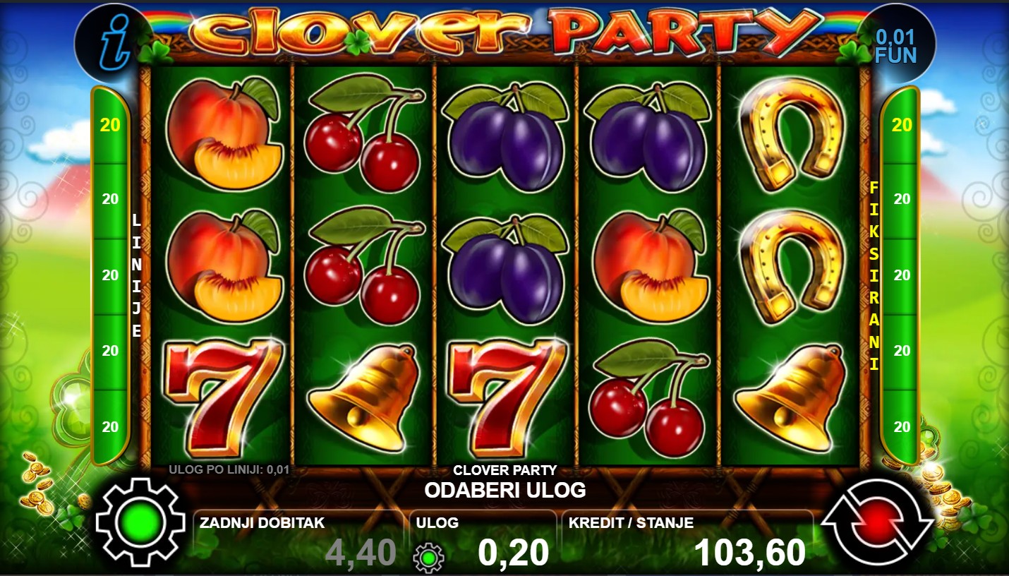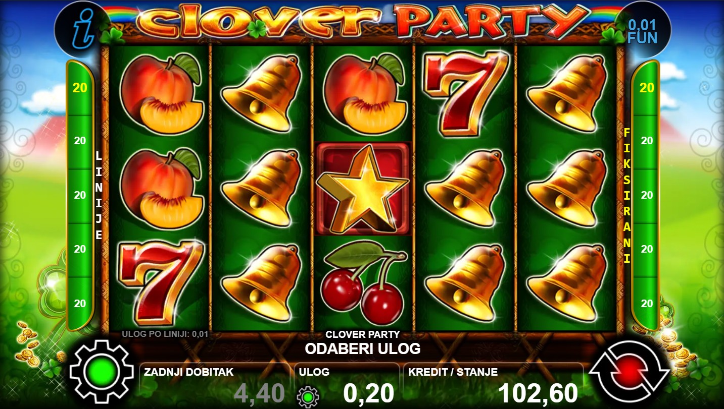 Clover Party je slot igra renomiranog providera CT Interactive koja te vodi u svijet veselih simbola djeteline i šarenih bubnjeva, gdje svaka vrtnja donosi pravu zabavu i uzbuđenje. Svaki spin može donijeti nasumične bonus značajke, Wild simbole i neočekivane preokrete koji te drže na rubu stolice. Zaigraj Clover Party i osjeti veseli party na svom ekranu!