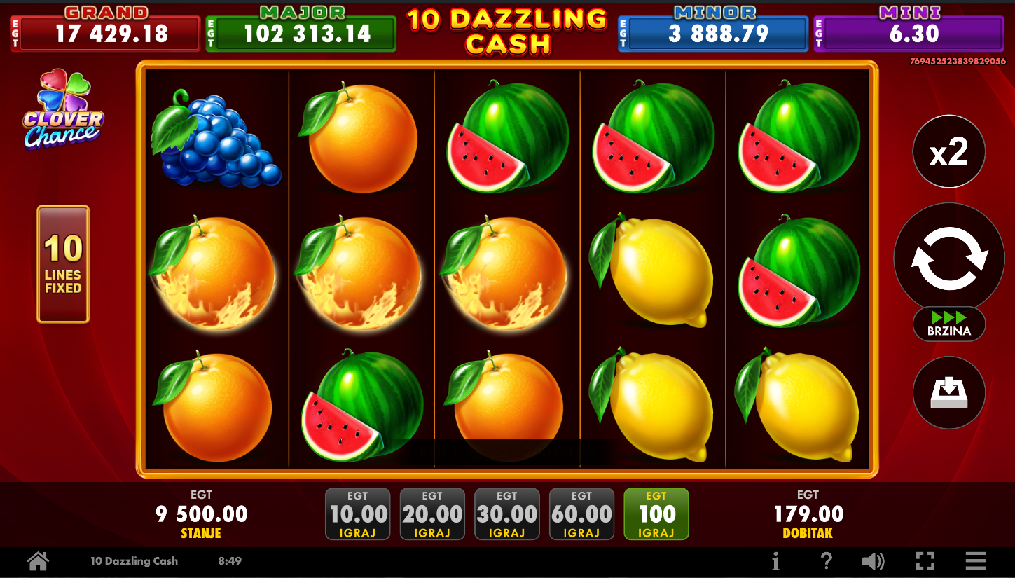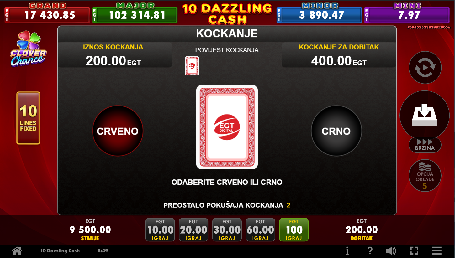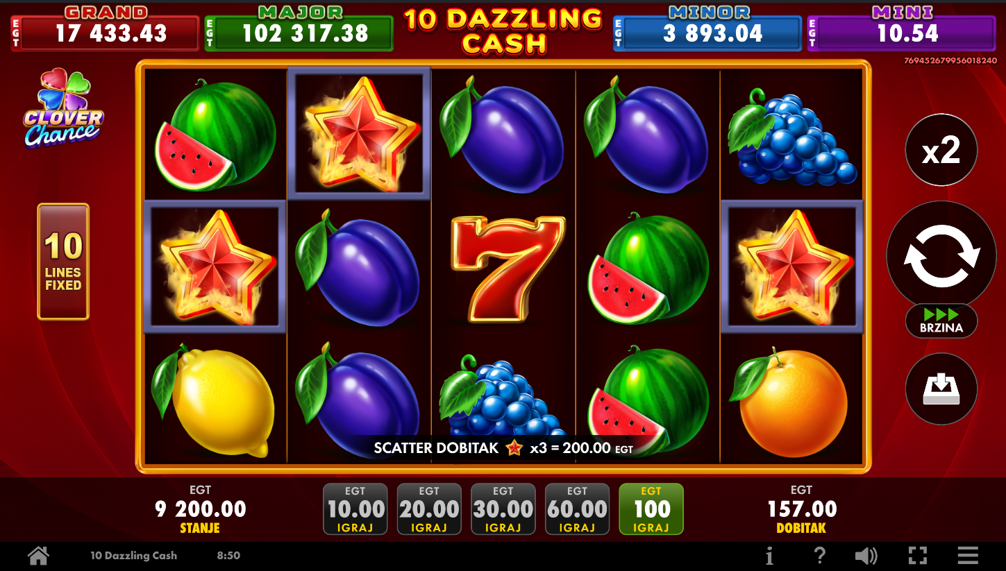 2. Ima li 10 Dazzling Cash Clover Chance jackpot?