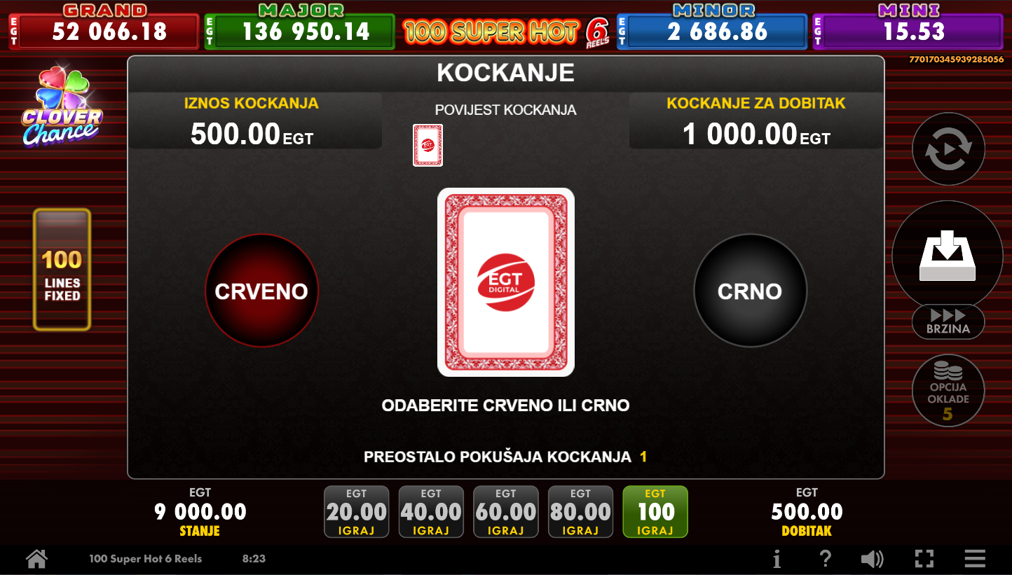 2. Ima li 100 Super Hot 6 Reels Clover Chance jackpot?