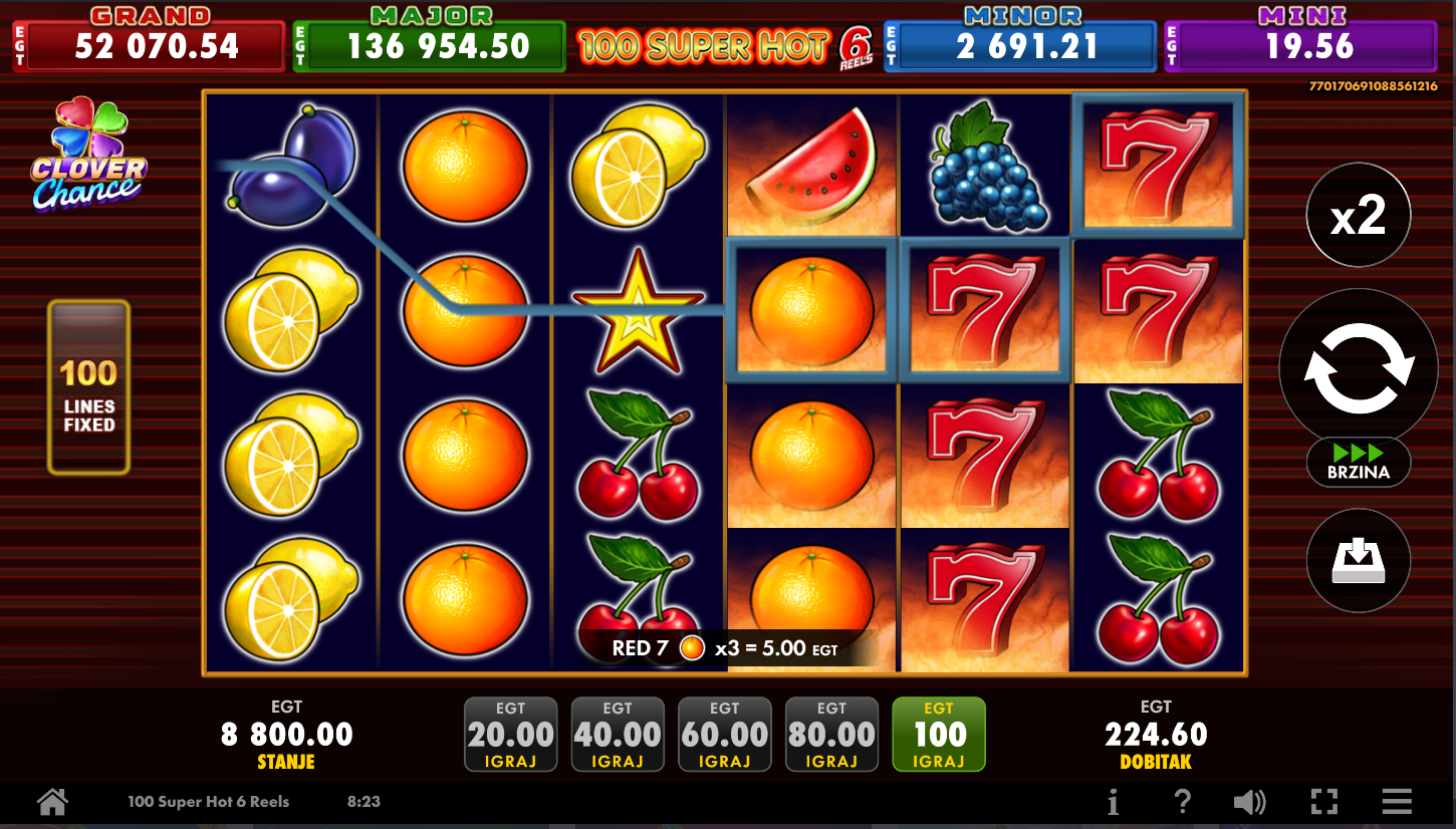 Kako igrati 100 Super Hot 6 Reels Clover Chance
