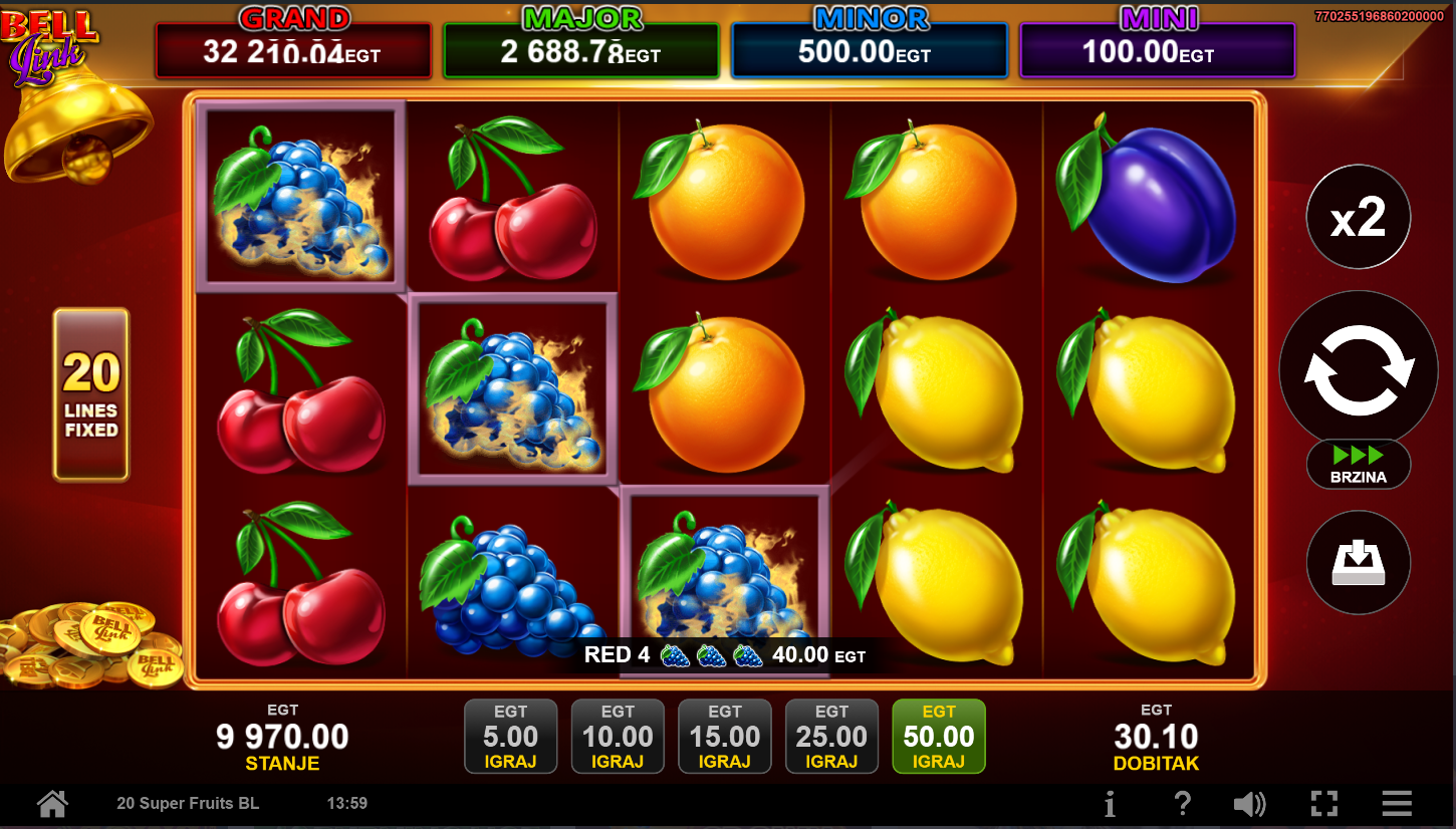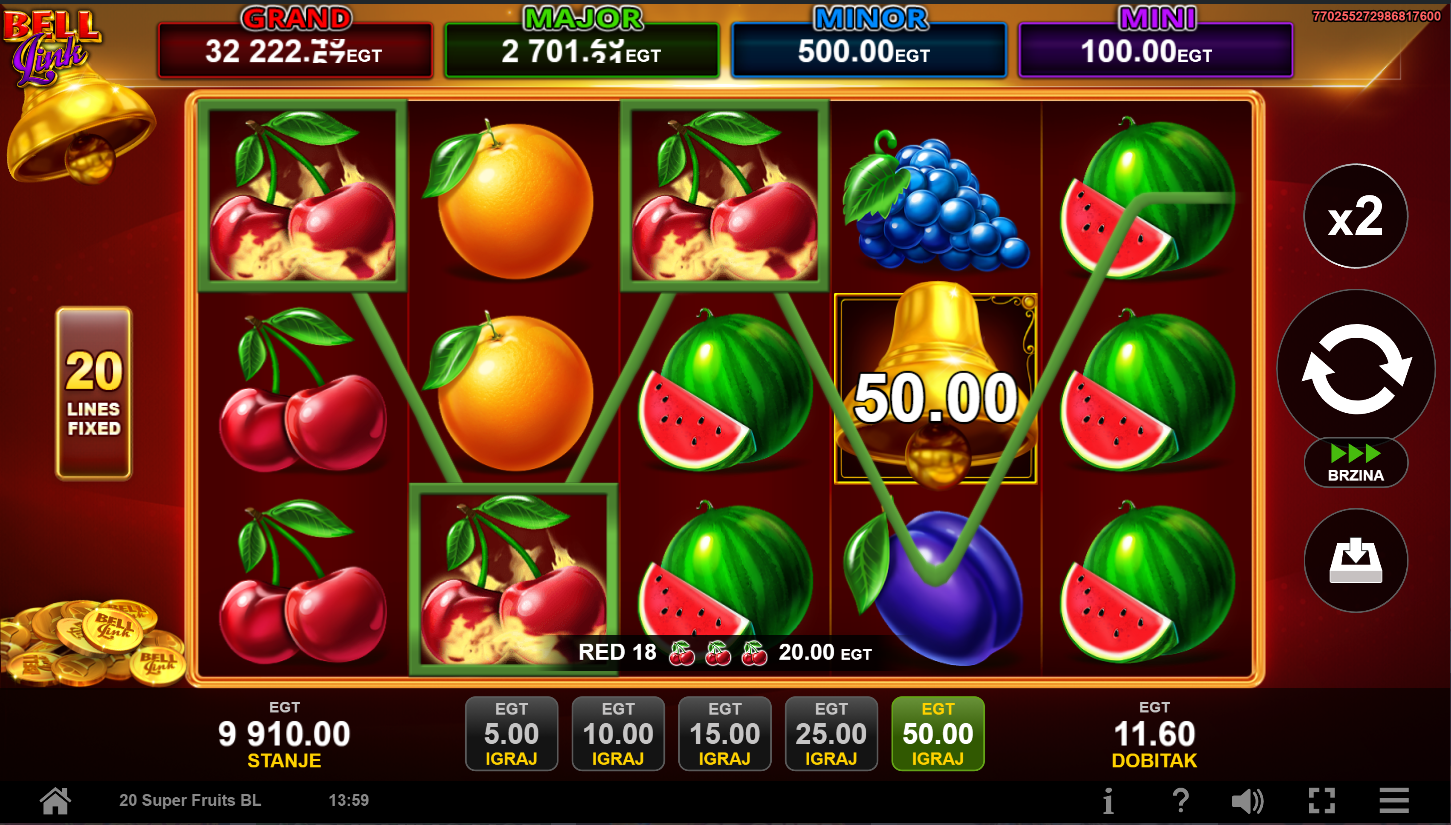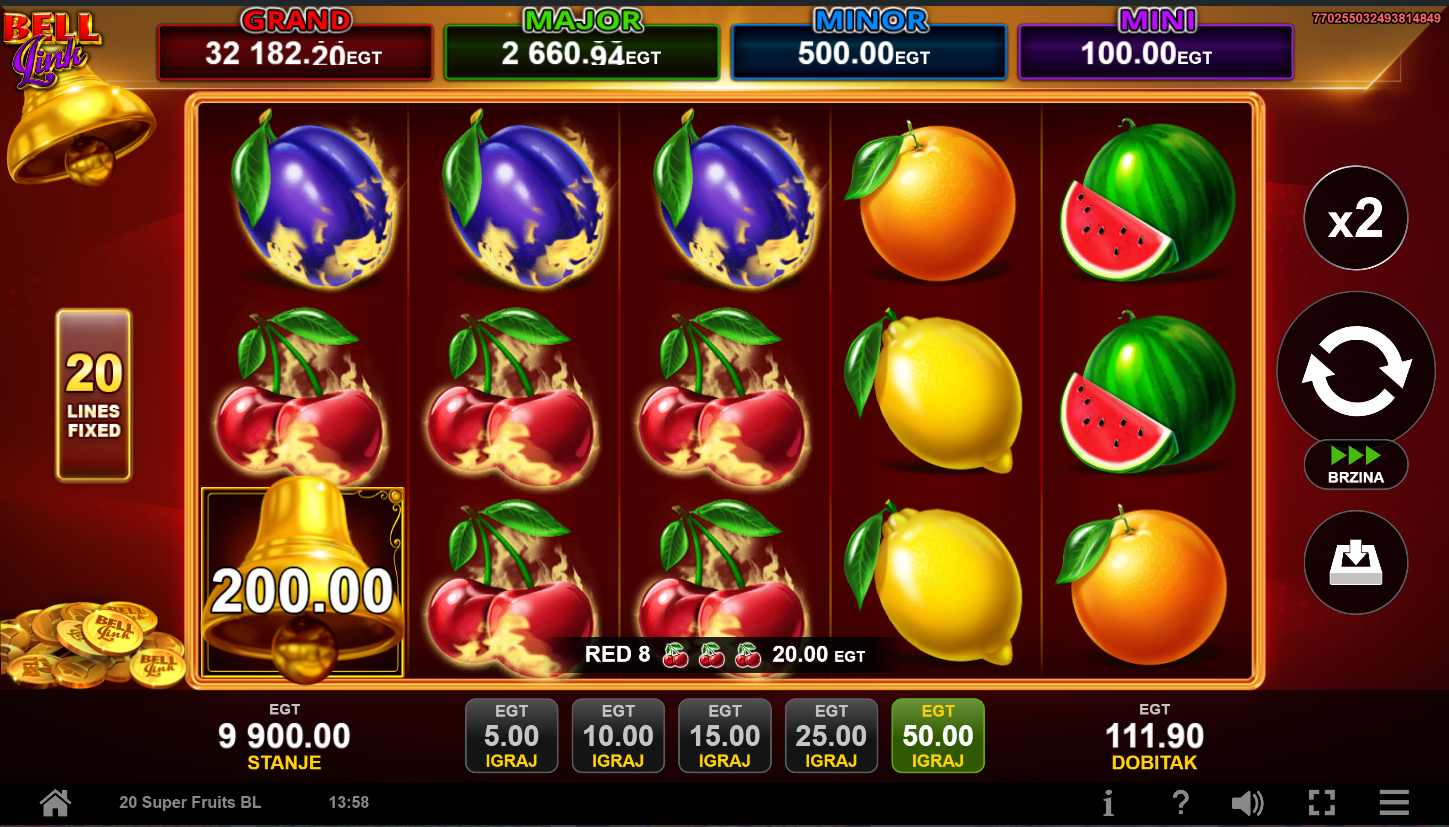 2. Ima li 20 Super Fruits Bell Link jackpot?