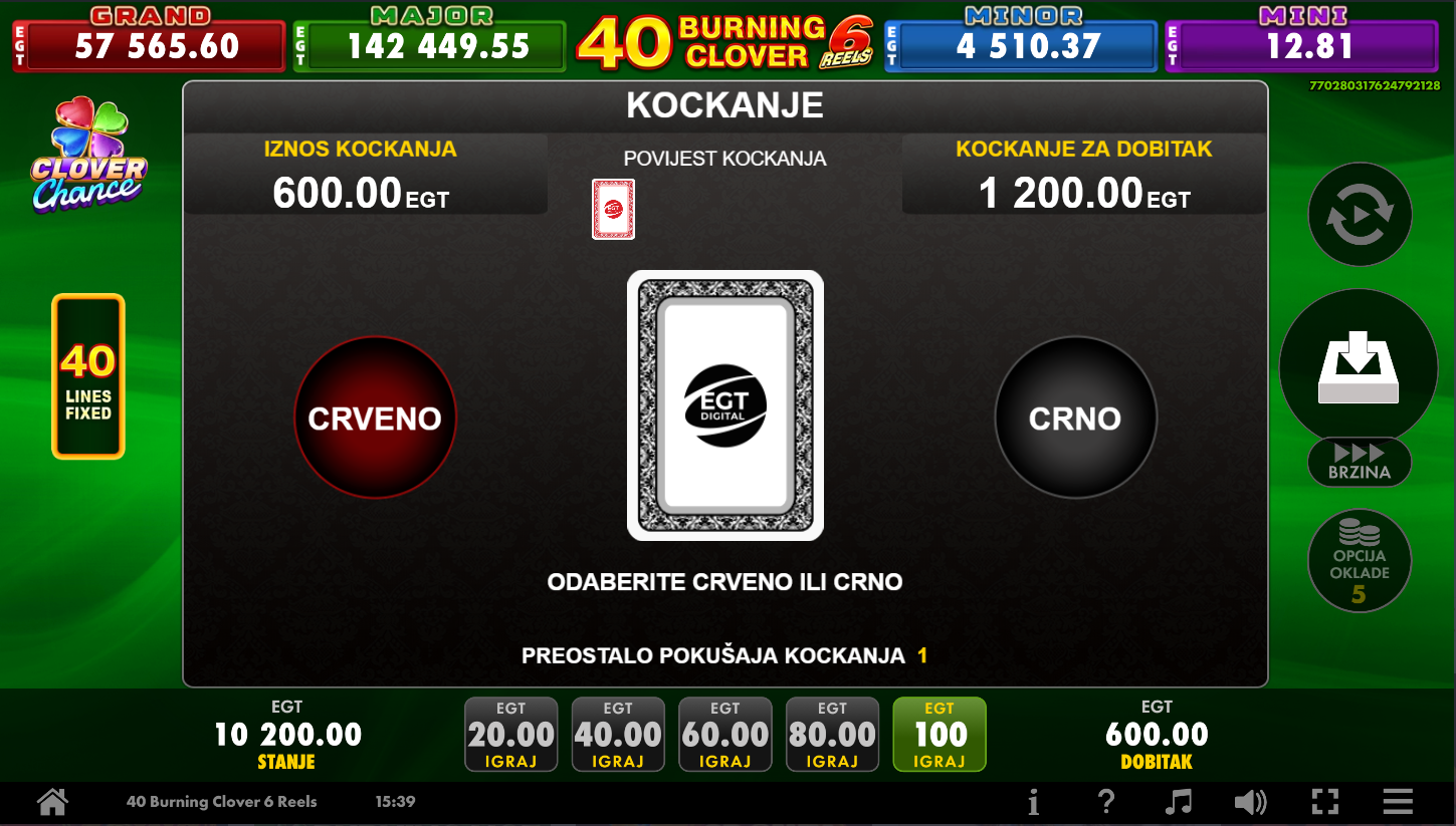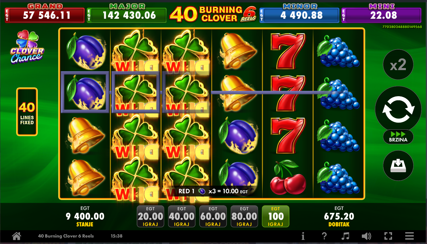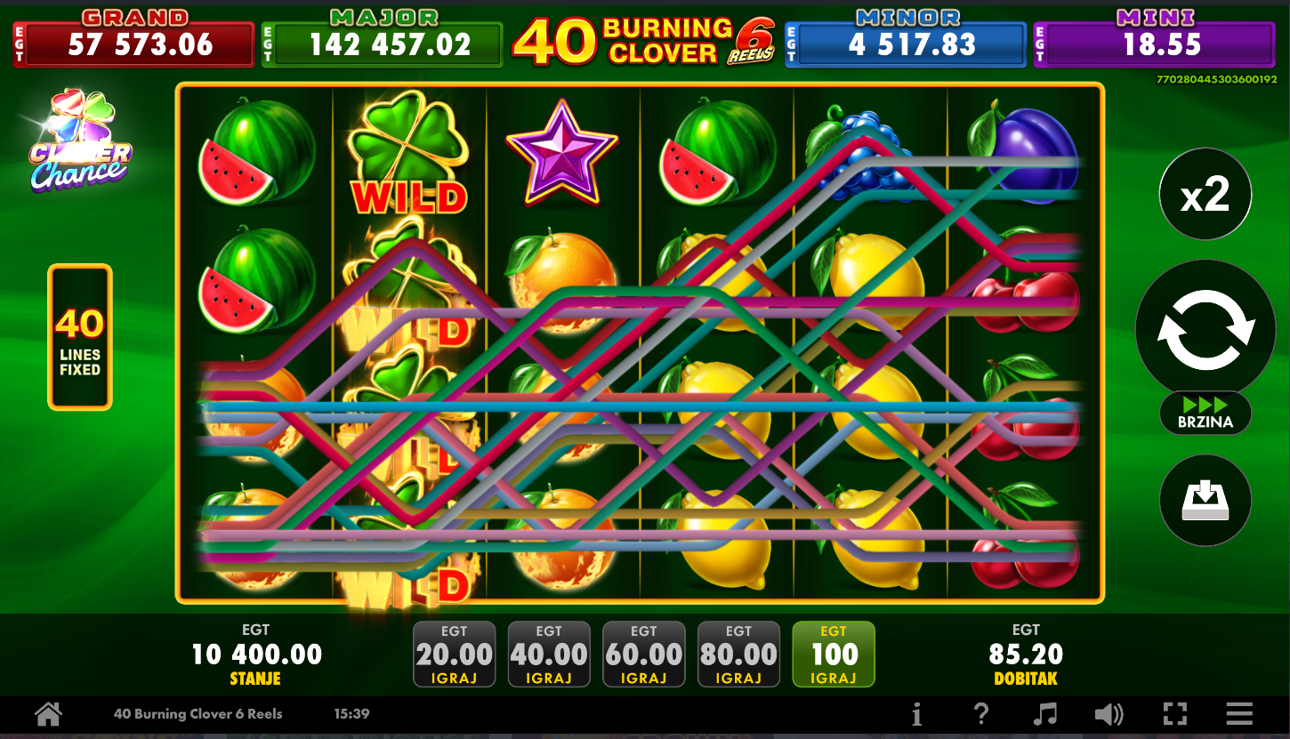 2. Ima li 40 Burning Clover 6 Reels Clover Chance jackpot?