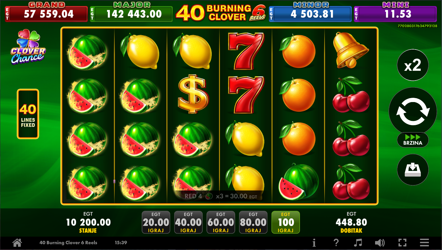 4. Koji su minimalni i maksimalni ulozi u igri 40 Burning Clover 6 Reels Clover Chance?