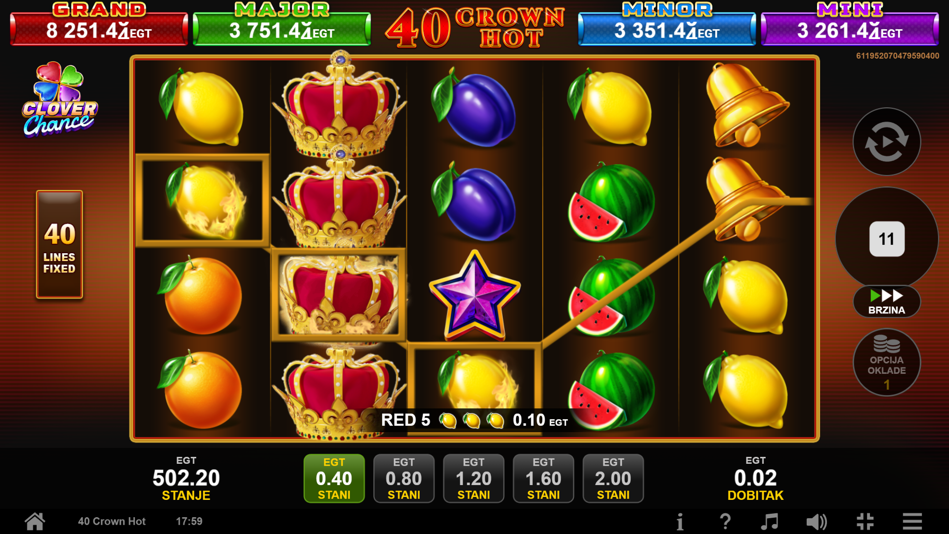 2. Ima li 40 Crown Hot Clover Chance jackpot?