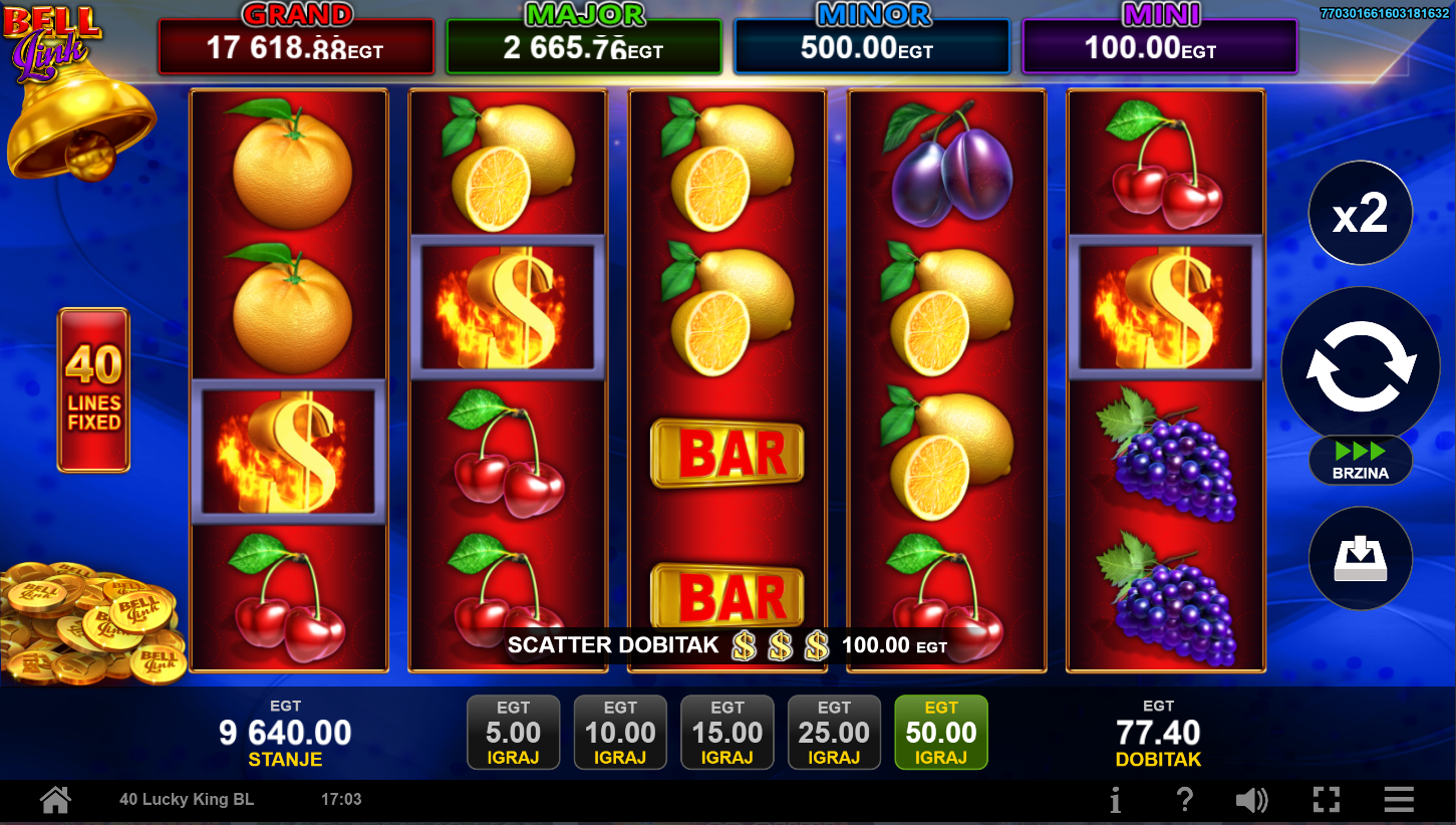 2. Ima li 40 Lucky King Bell Link jackpot?