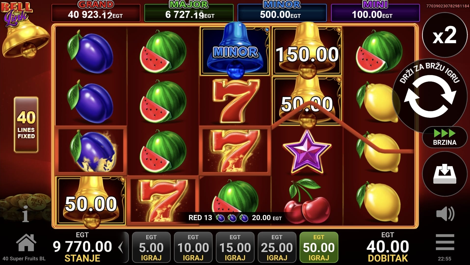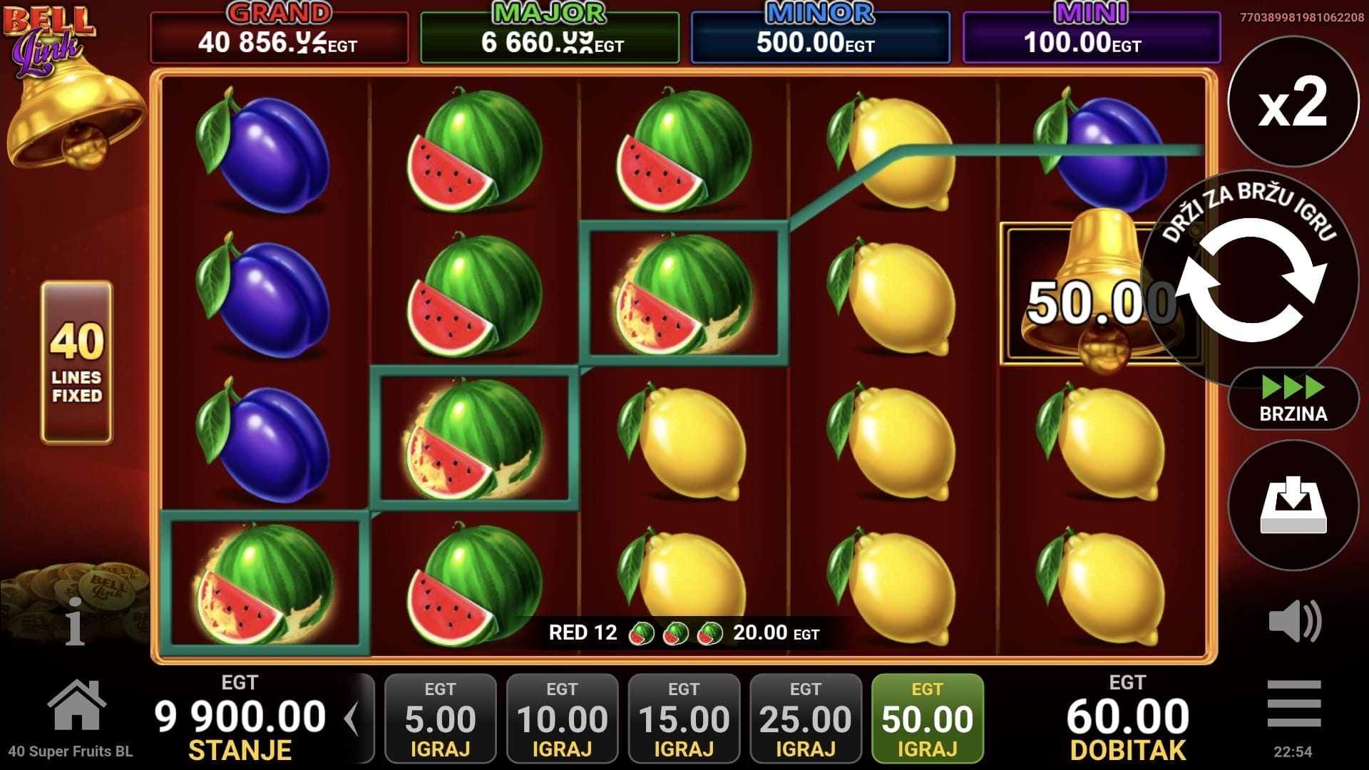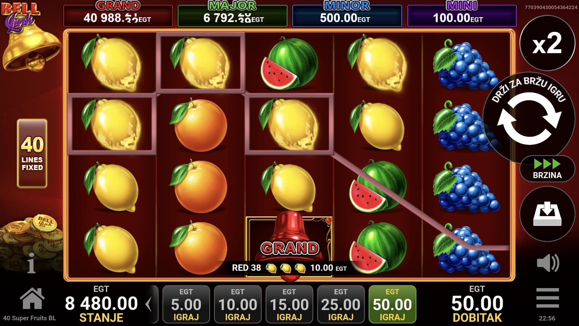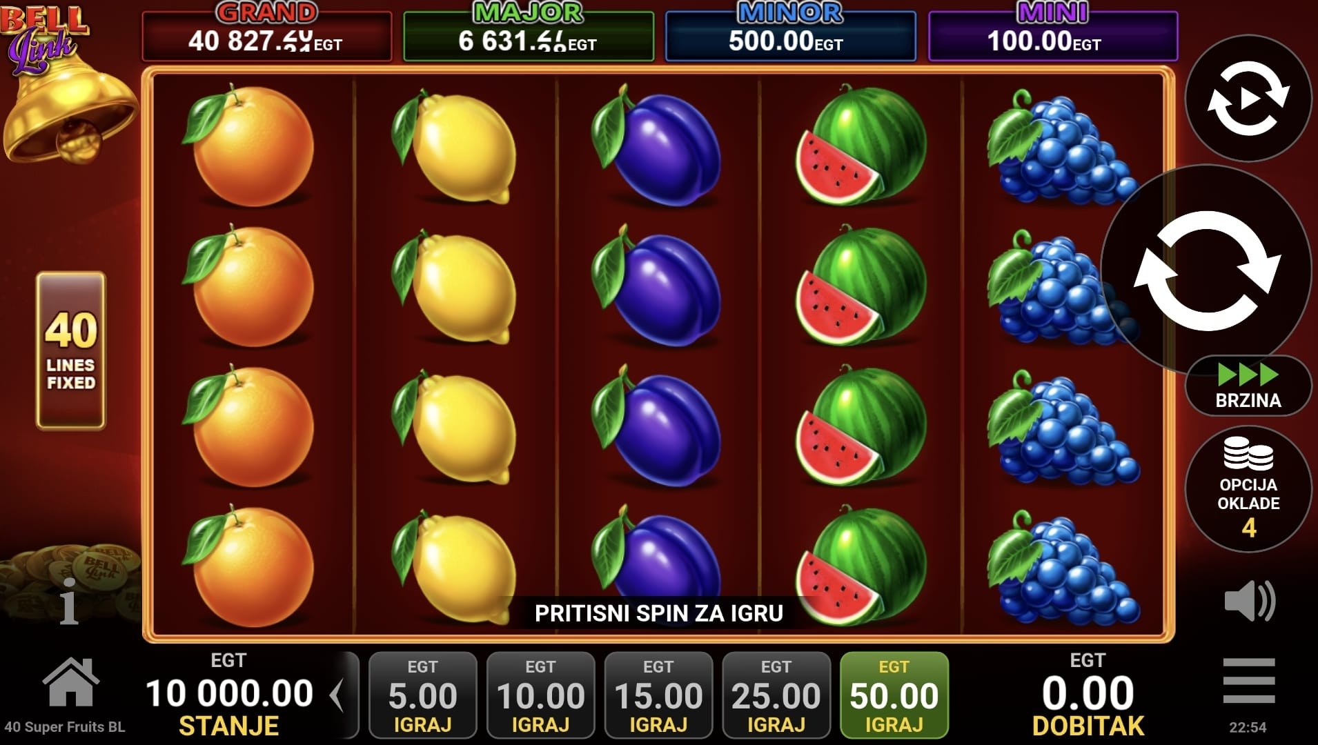 2. Postoji li jackpot u 40 Super Fruits Bell Link?