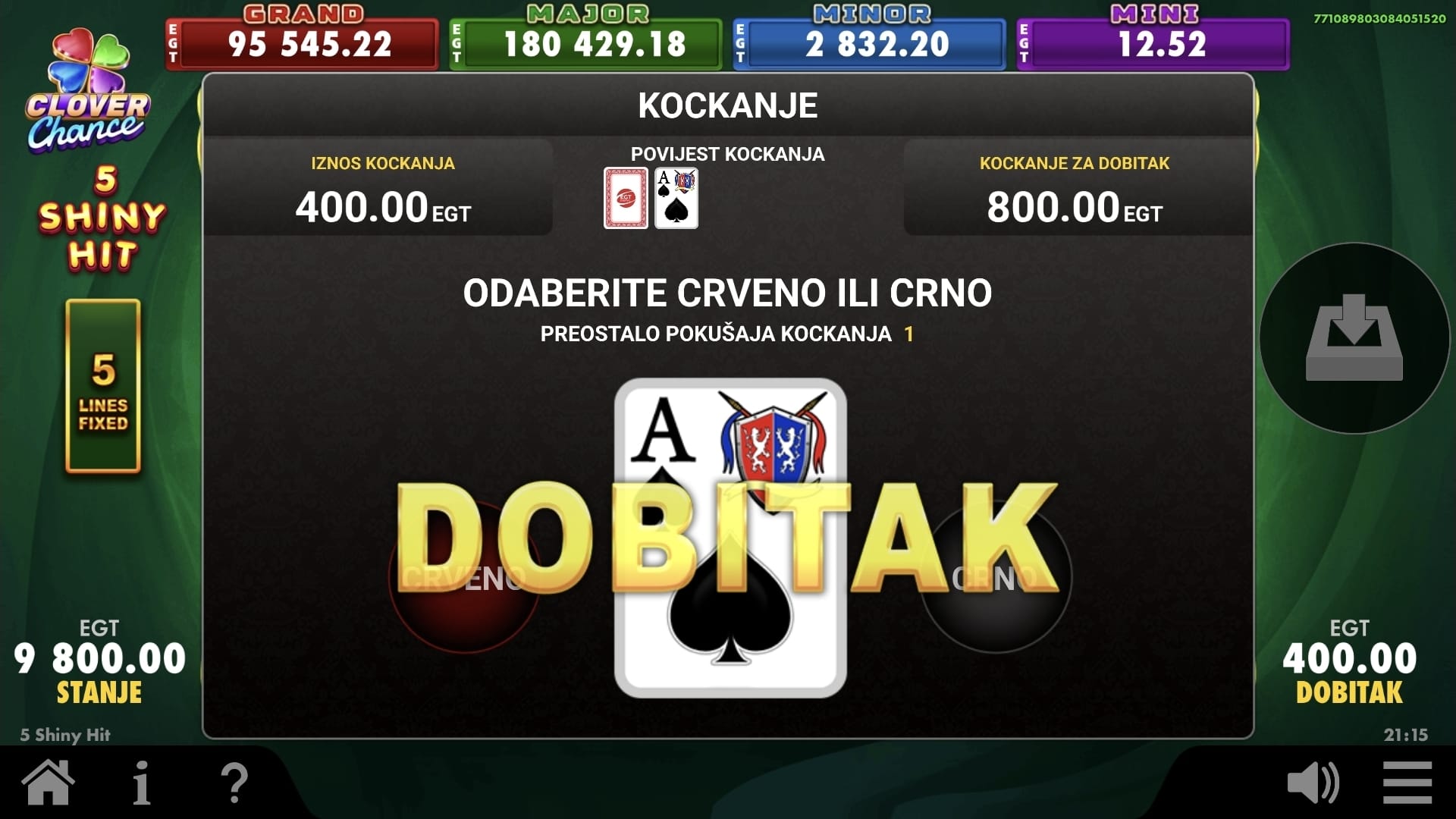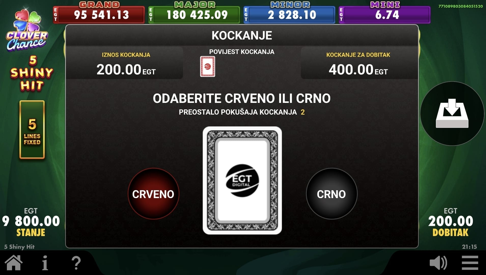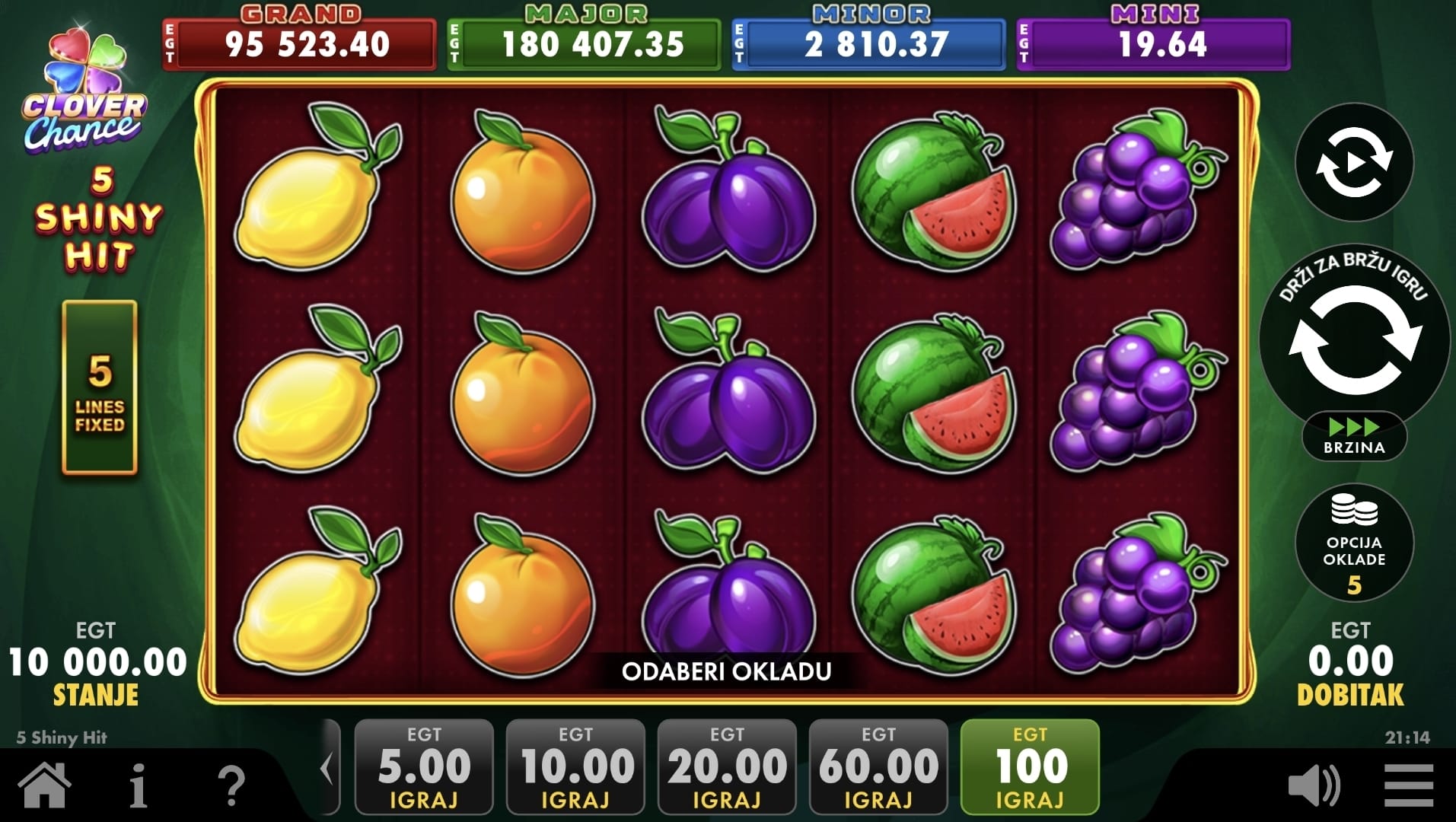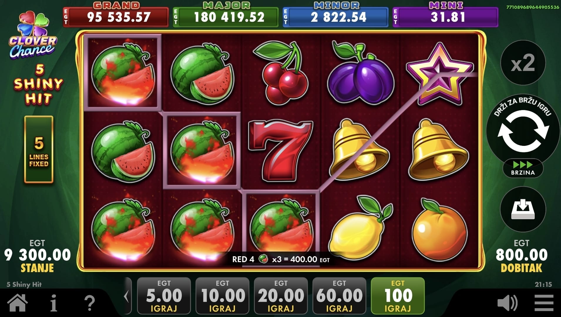 2. Postoji li jackpot u 5 Shiny Hit Clover Chance?