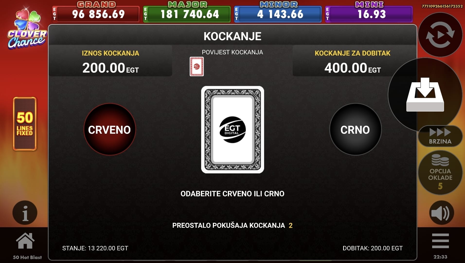 Nakon svake dobitne vrtnje, imate priliku udvostručiti svoj dobitak u značajci Klađenja pogađajući boju sljedeće karte.