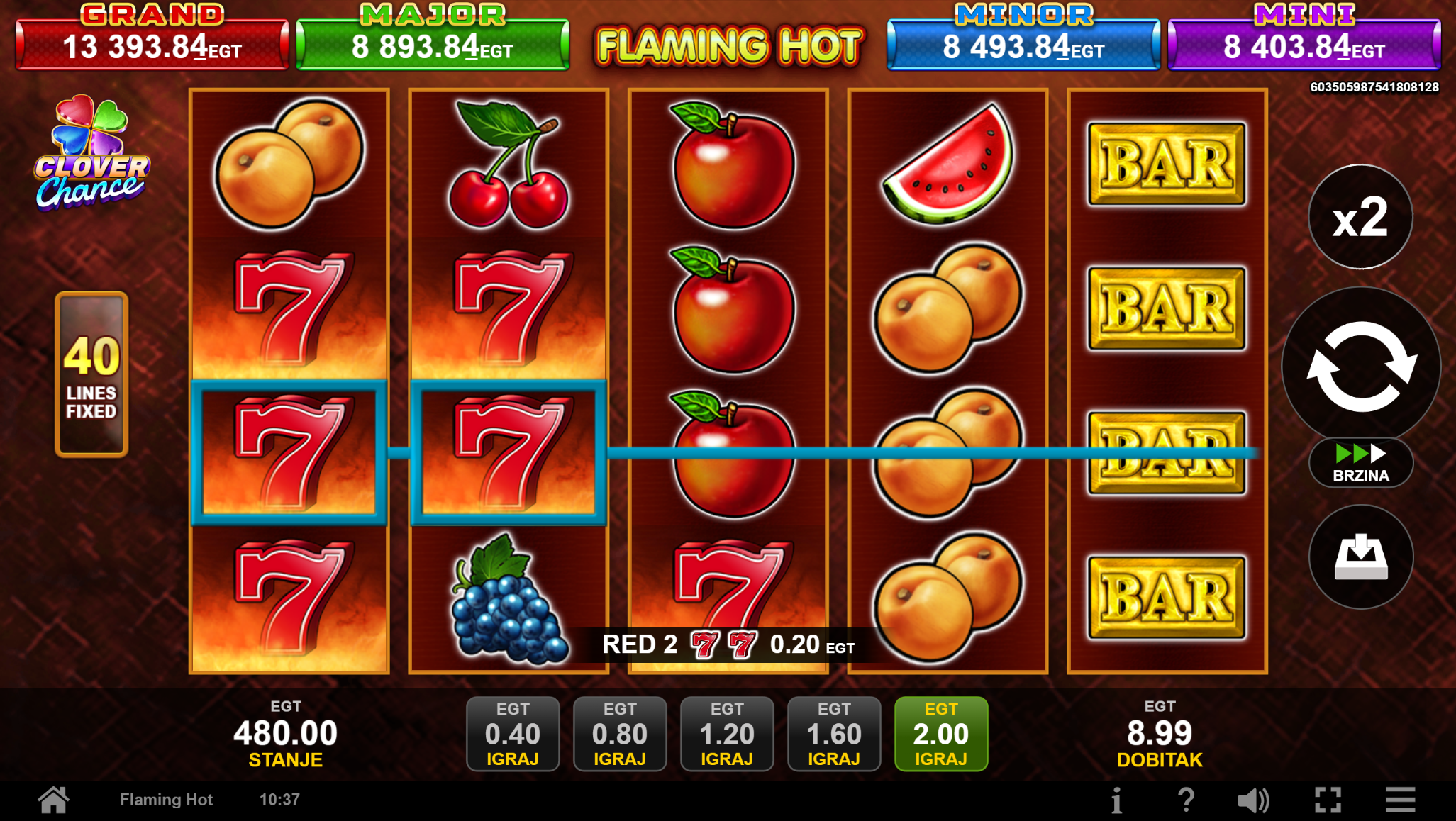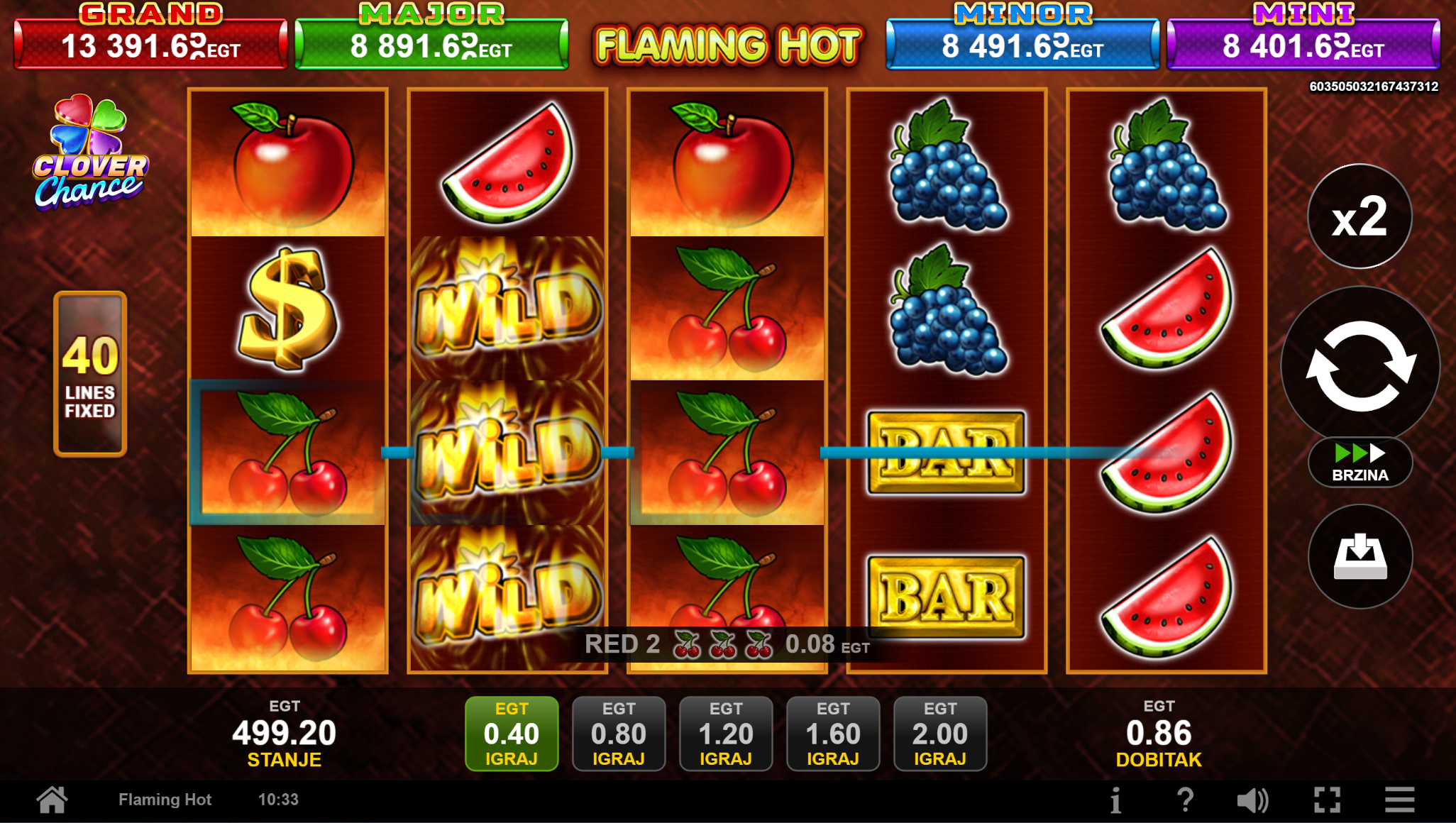 Igra Flaming Hot Clover Chance ima RTP u iznosu od 95,53%, što znači da igrači imaju dobre šanse za ostvariti dobitak. Volatilnost igre je srednja, što znači da igrači mogu očekivati česte, ali niže dobitke.