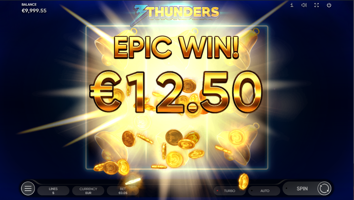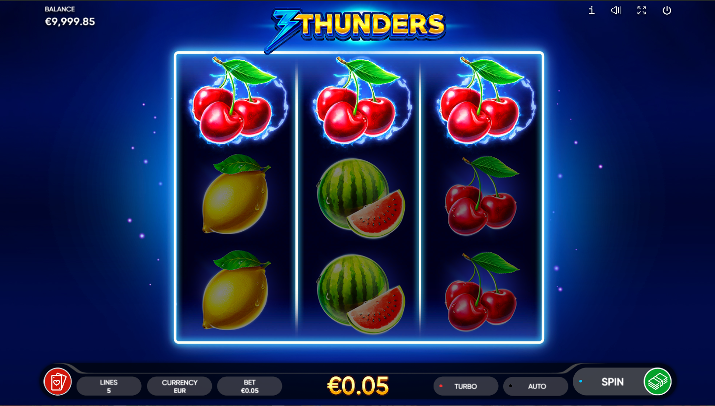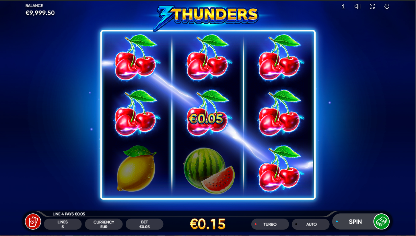 3 Thunders i Endorphina te vraćaju u retro svijet klasičnih voćkica, ali s modernim udarcem groma! Na 3 koluta i 5 linija, svaki spin pršti energijom. Simboli voća, zvona i sedmica oživljavaju na ekranu uz eksplozivnu atmosferu. Klasični izgled krije sočne bonus funkcije. Ovo je old school slot s munjevitim twistom!