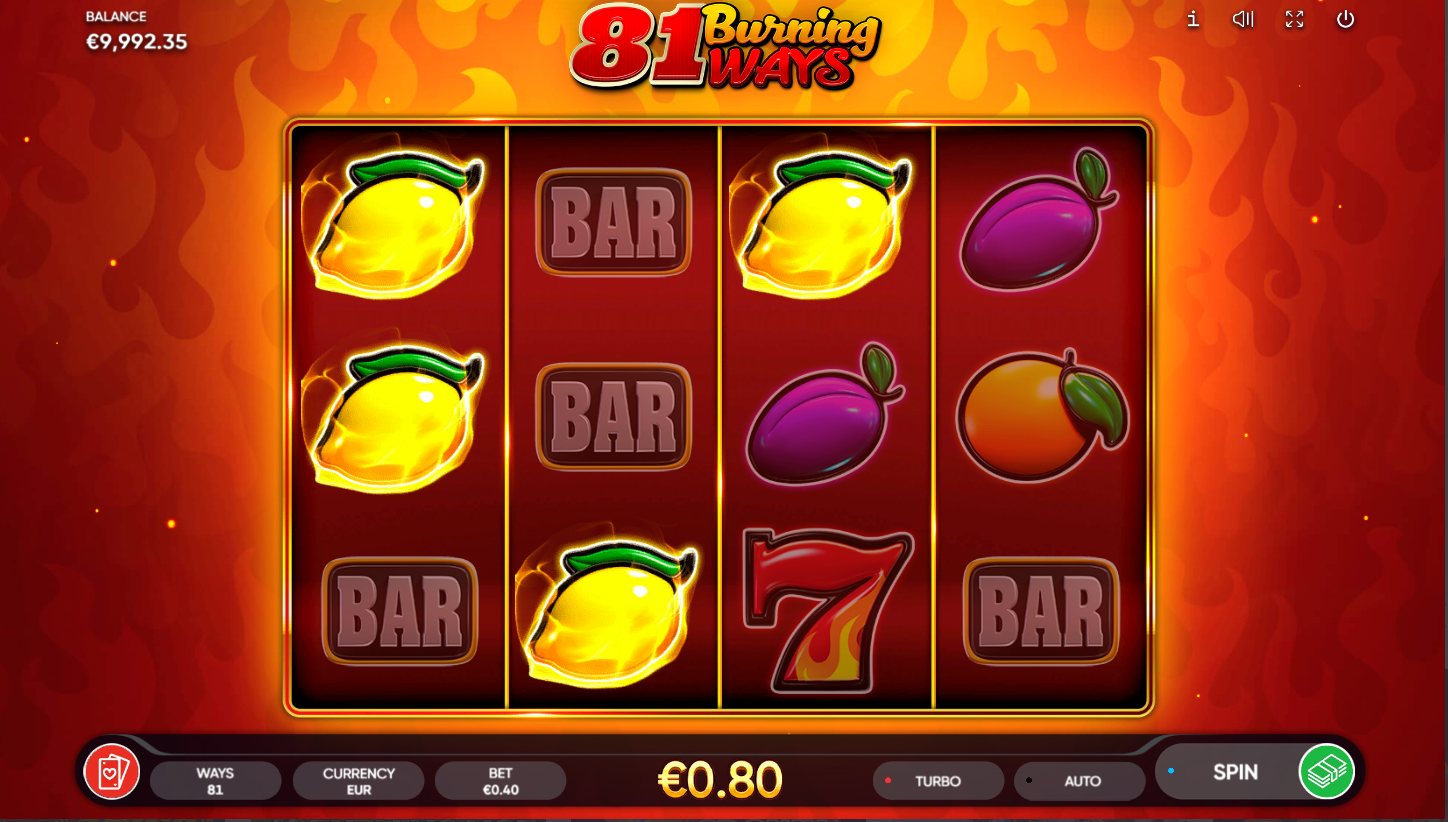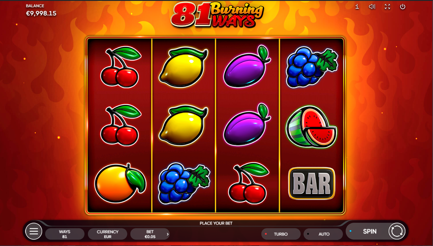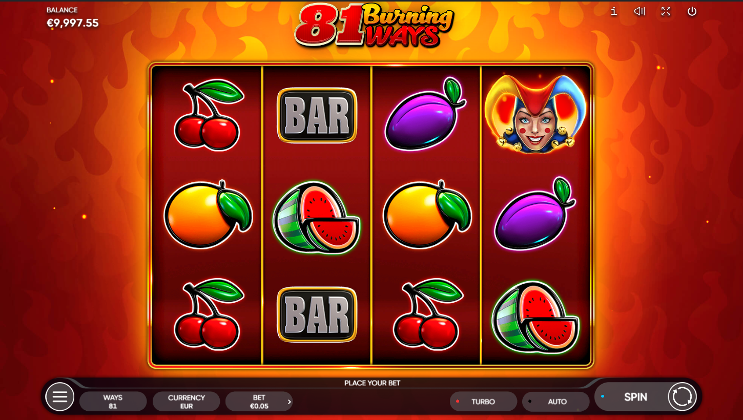 81 Burning Ways od Endorphine spaja retro voćkice s eksplozivnim multiplikatorima! Na 4 koluta i 81 način isplate, svaki spin može buknuti u vatreni dobitak. Joker Wild donosi iznenađenje jer udvostručuje tvoje kombinacije. Ako se pojavi više Wild simbola, multiplikatori se množe i eksplodiraju u još veće nagrade. Klasični slot nikad nije bio ovako zapaljiv!