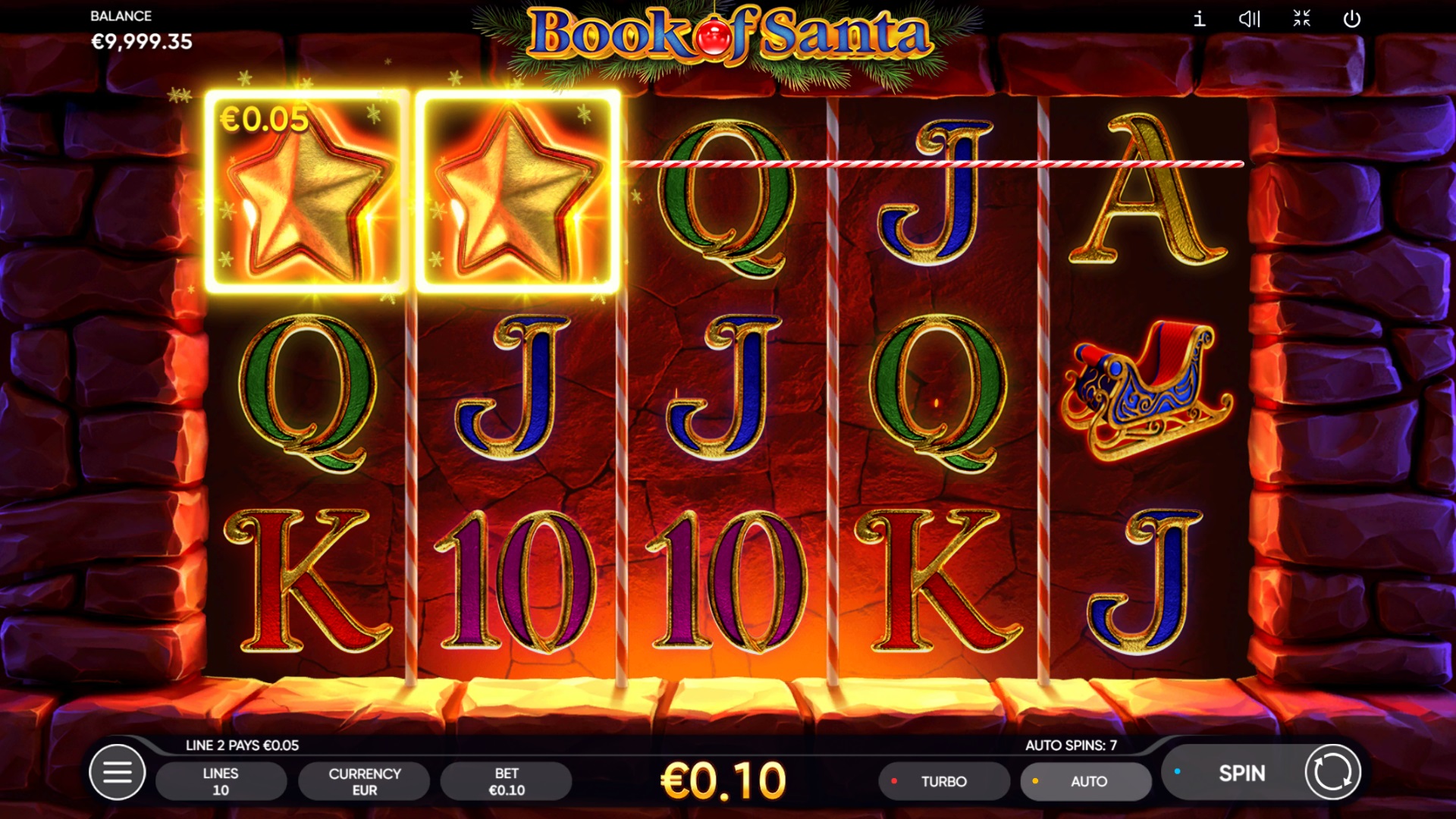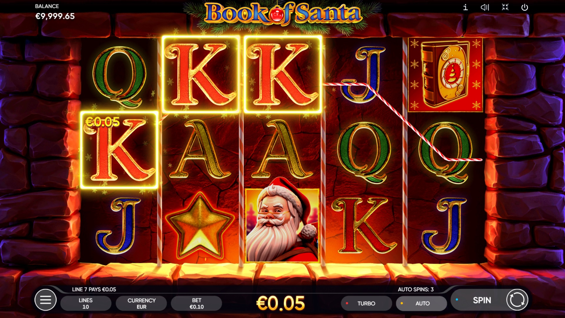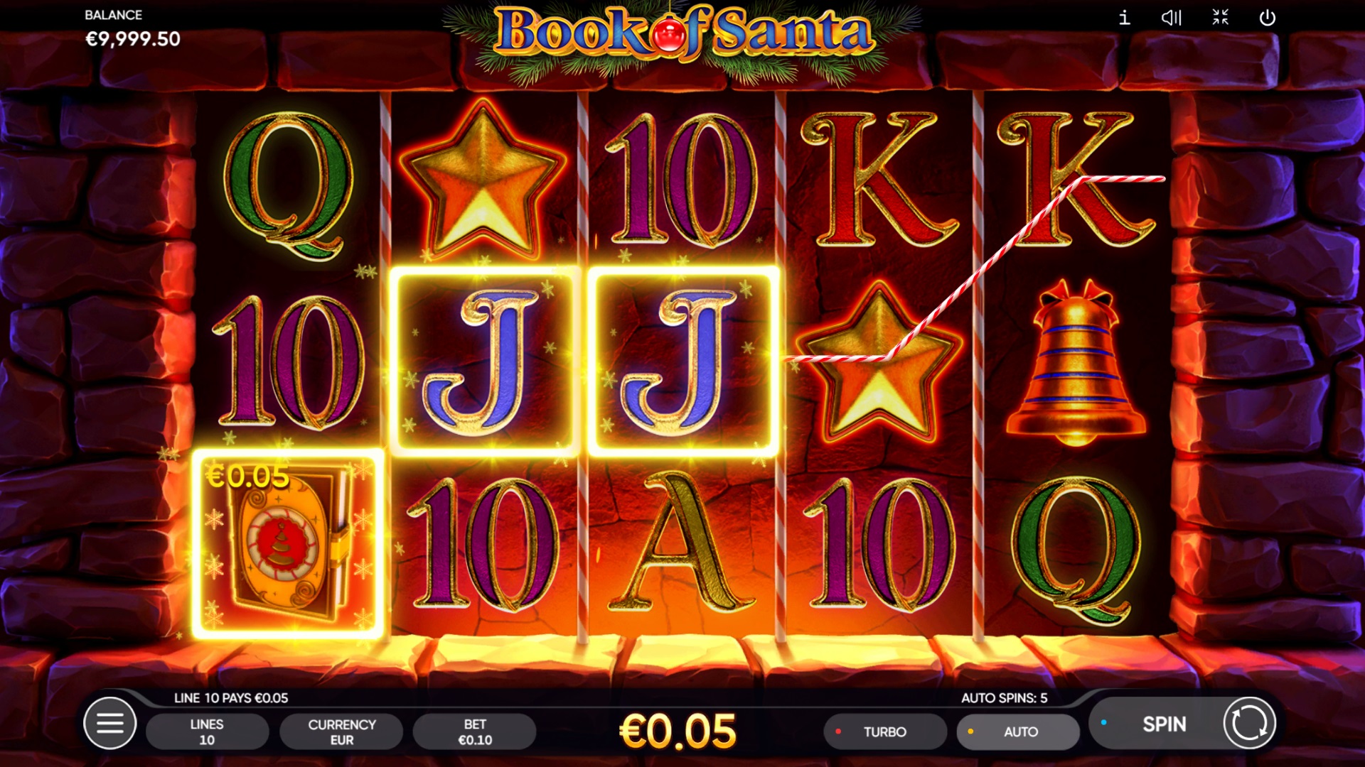 U igri Book of Santa, uživat ćeš u raznolikim bonusima i šarenim simbolima. Ova igra nudi uzbudljive mogućnosti za dobitak uz fantastične free spinove i velike jackpote. S pet koluta i deset isplatnih linija, Book of Santa pruža igračima priliku za osvajanje velikih nagrada kroz posebne simbole i bonus igre. Posebno je uzbudljivo to što tijekom besplatnih igara možeš aktivirati funkciju širenja simbola, što dodatno povećava šanse za dobitak.
