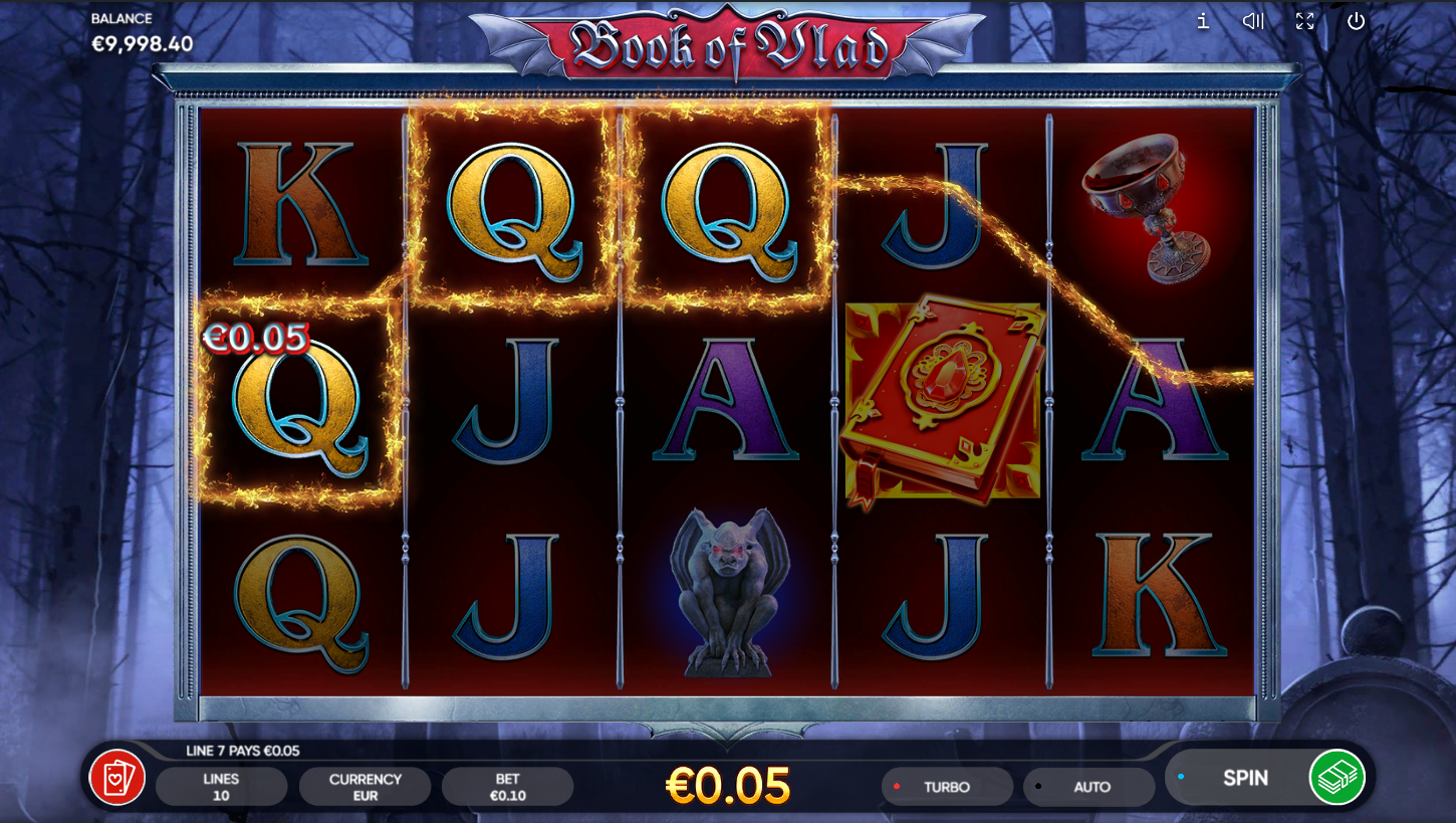 Book of Vlad i Endorphina otvaraju vrata mračnog, vampirskog svijeta punog mistike i nagrada! Na 5 kolutova i 10 linija, svaki spin može otkriti tajne grofova tame. Simbol knjige ima dvostruku moć, i Wild i Scatter u isto vrijeme. Atmosfera je jeziva, ali uzbudljiva, kao da si zakoračio u Vladov dvorac. Ako voliš horor teme i moćne dobitke, ovo je igra za tebe!