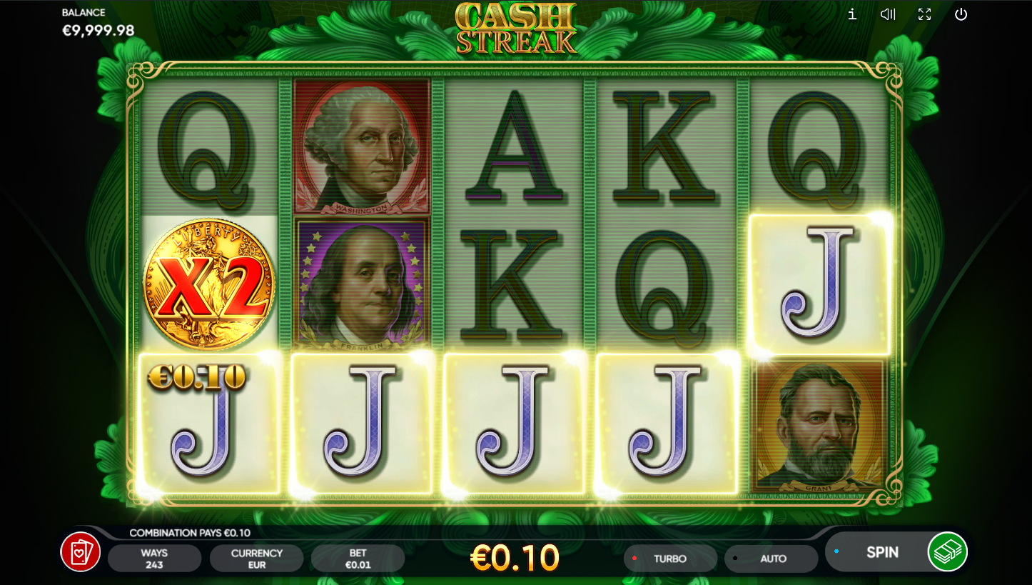 Cash Streak, od Endorphine, je pravi hit za sve koji vole brze i uzbudljive slotove! Na 5 kolutova i 243 načina dobitka, svaki spin može zapaliti tvoju sreću. Simboli bogatstva i mistike stvaraju atmosferu luksuza i tajanstva. Multiplikatori i Scatteri dodaju ekstra dozu napetosti. Ovdje se sve vrti oko niza dobitaka, i to onih sočnih!