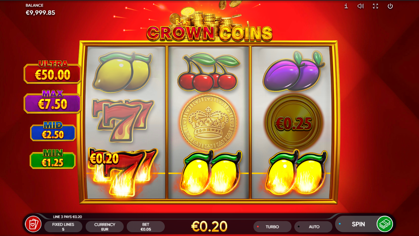 4. Koji su minimalni i maksimalni ulozi u igri Crown Coins?