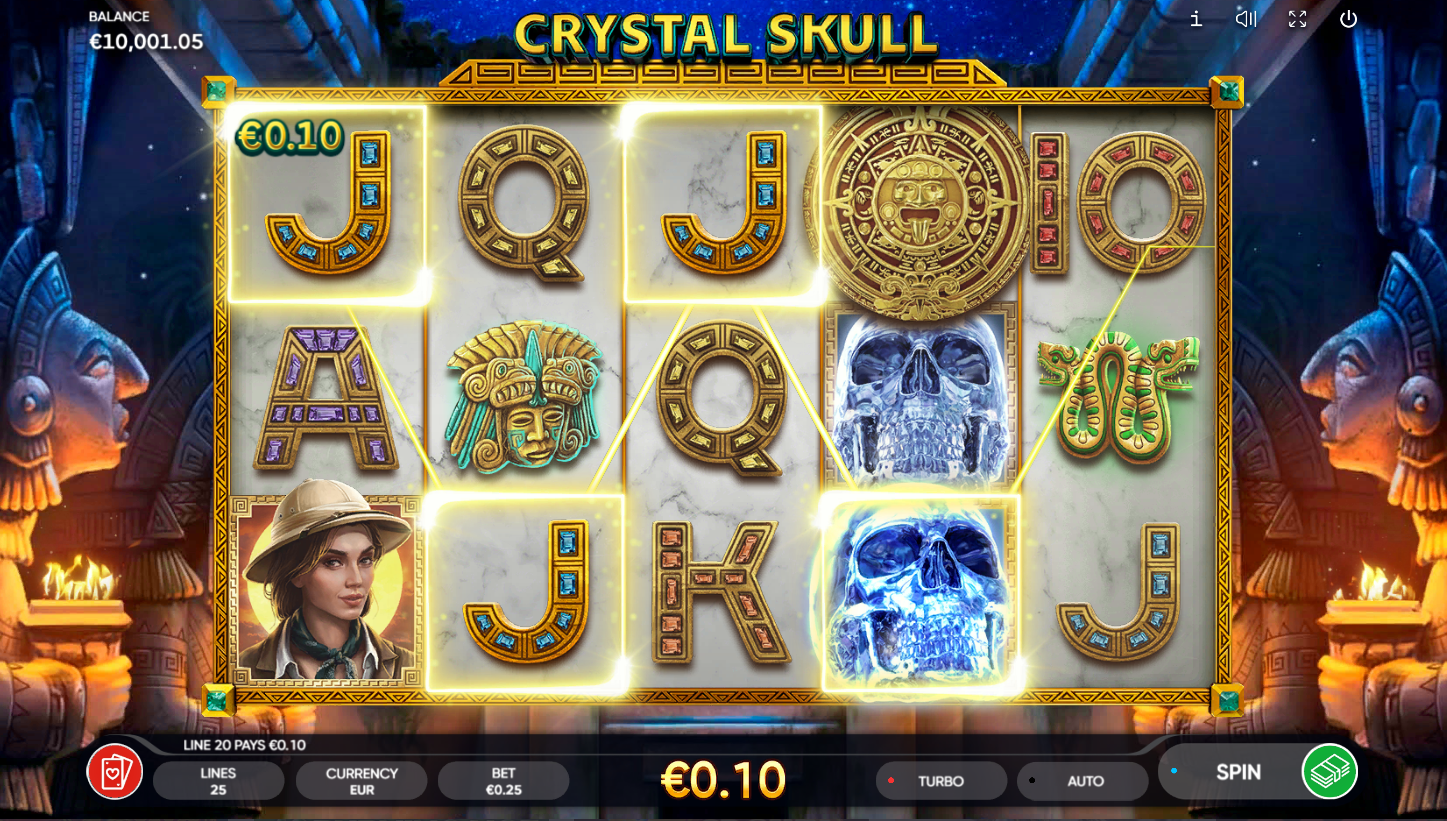 Crystal Skull i Endorphina vode te u avanturu punu misterija i skrivenih blaga! Na 5 kolutova i 25 linija čekaju te kristalne lubanje, zlatni artefakti i uzbudljive bonus igre. Wild lubanja širi se po kolutima i donosi moćne kombinacije. Scatter simboli otključavaju kolo sreće i dodatne nagrade. Ovo je slot za sve istraživače željne adrenalina i rizika!