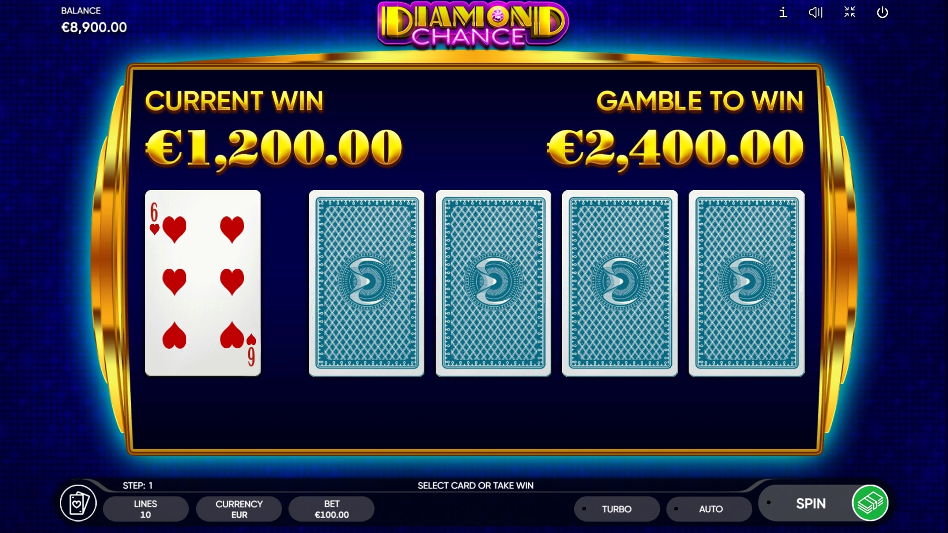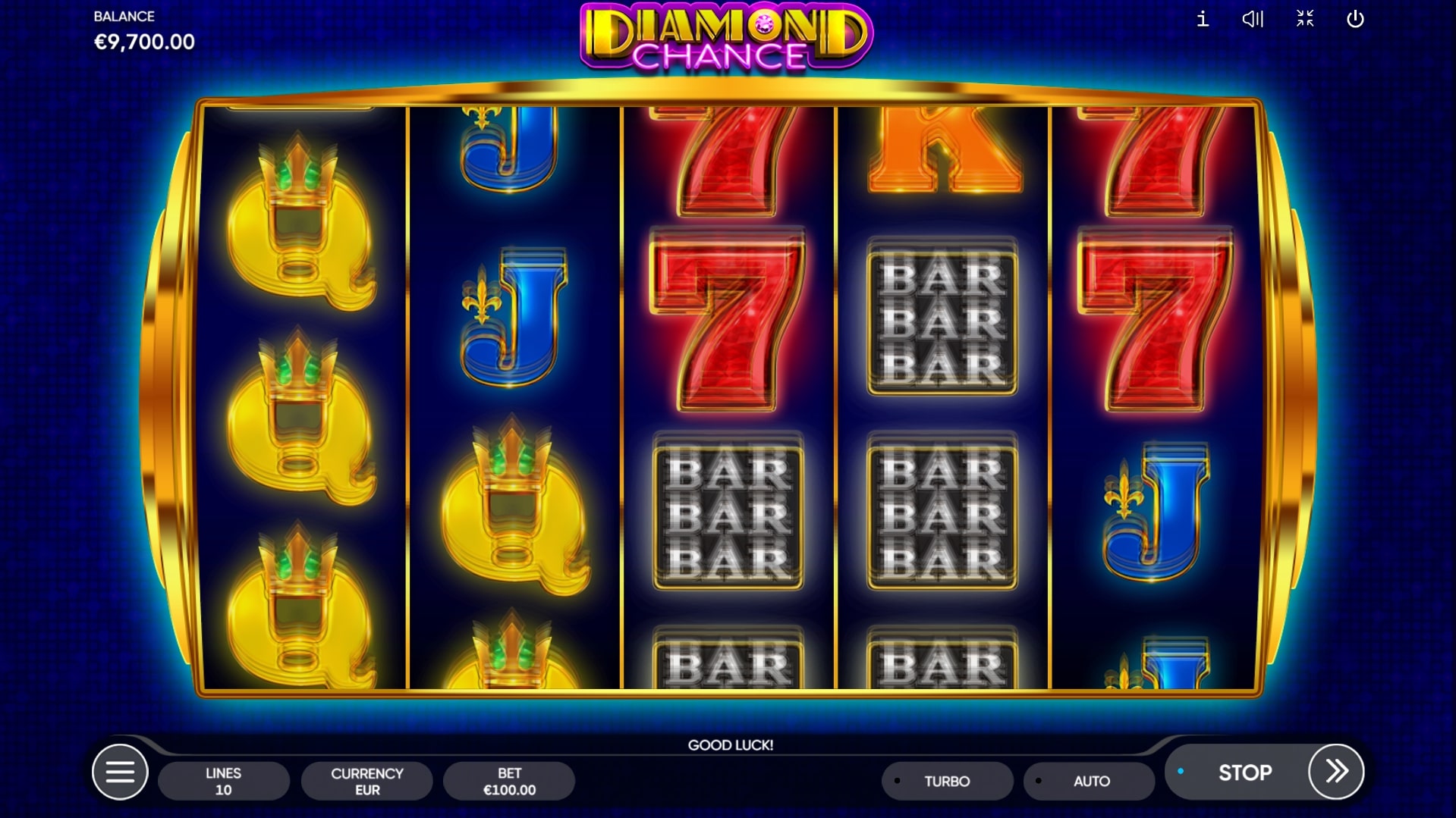 Diamond Chance tematska je slot igra koja vodi igrača u svijet luksuza i zlata vrijednih dobitaka. Simboli su inspirirani retro slotovima, a najviše isplaćuju sedmice, zvona i poluge. Igra uz to sadrži simbol dolara koji može zamijeniti druge simbole u potrazi za dobicima. U slučaju dobitka, igrač ga može udvostručiti pogađanjem veće karte od one okrenute licem prema gore. Zaigraj Diamond Chance te ostvari nestvarne nagrade!