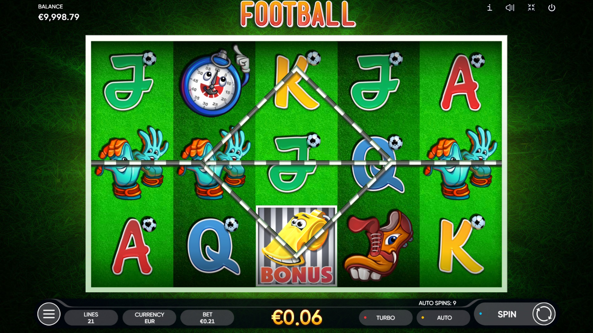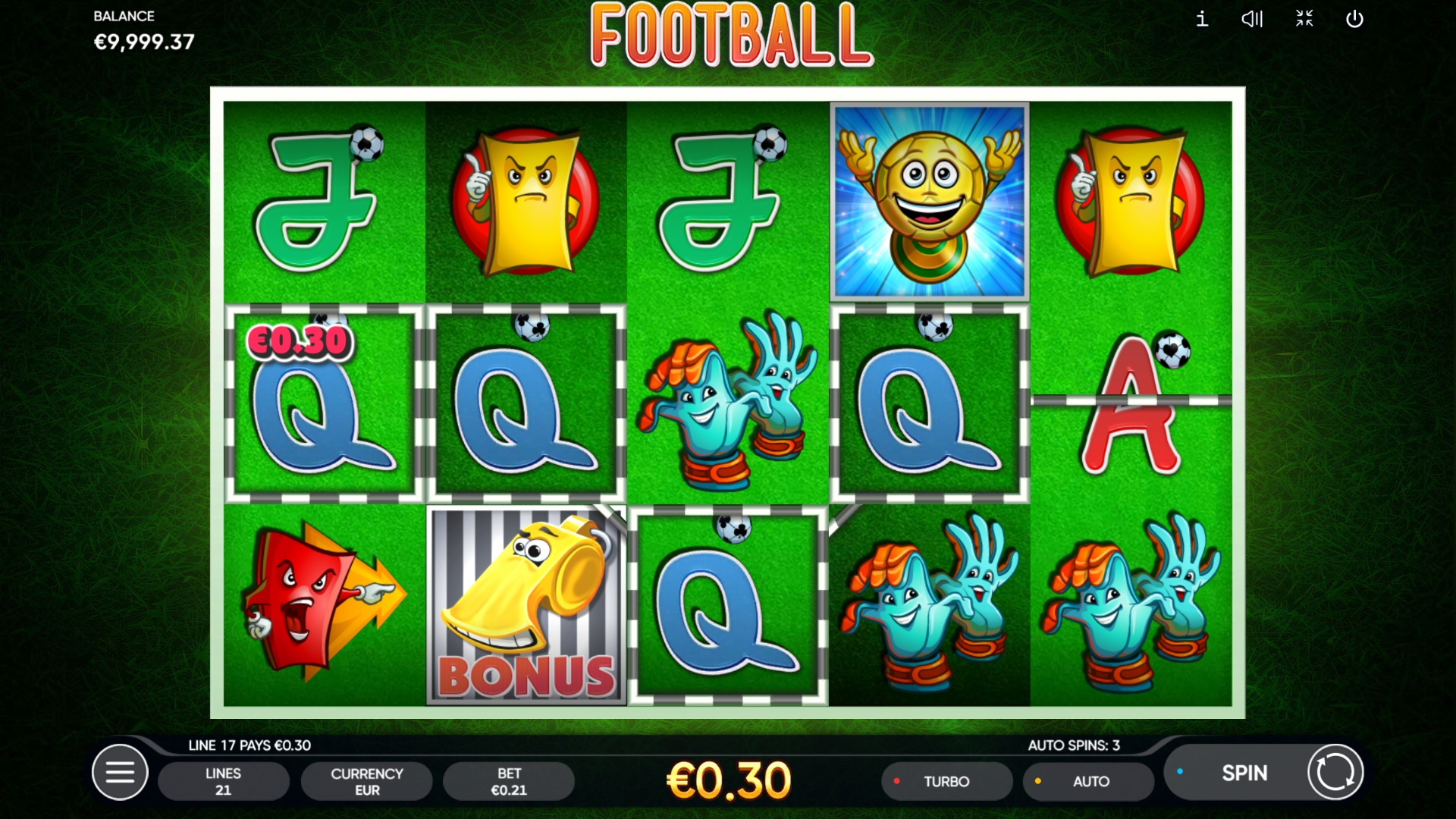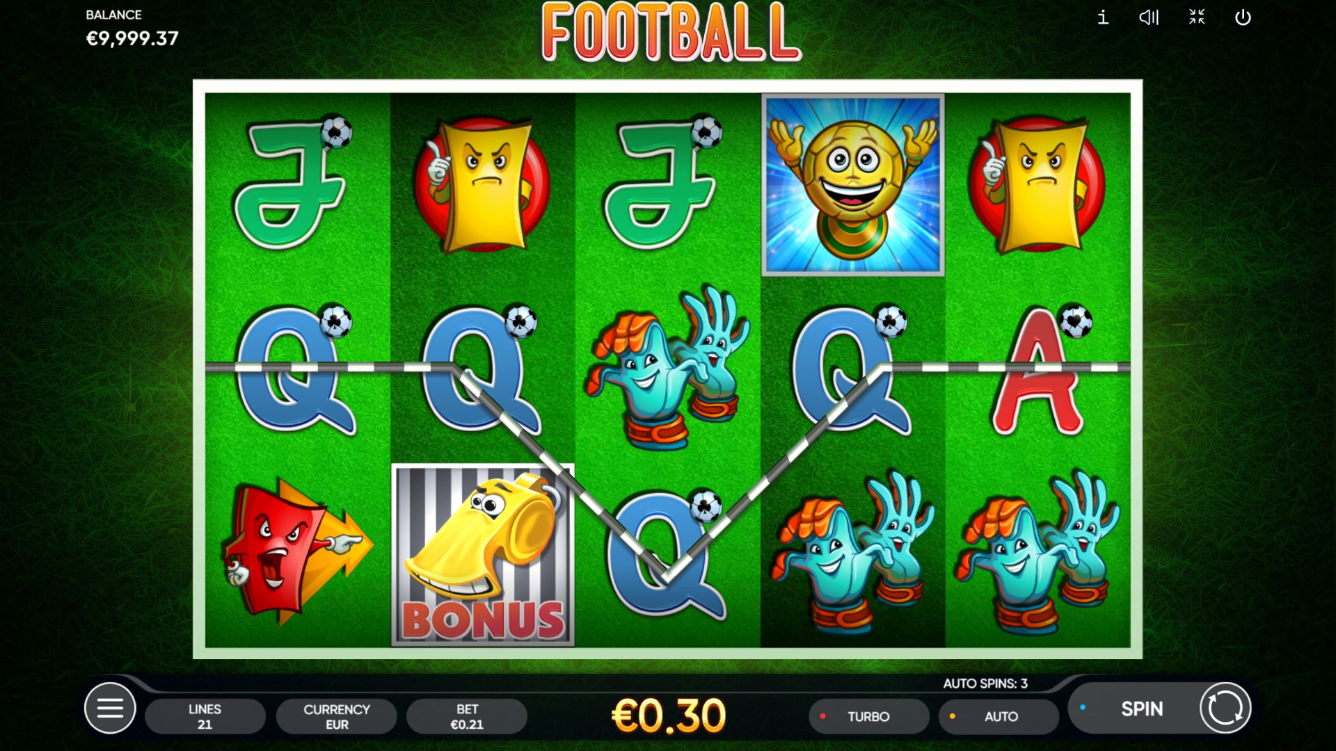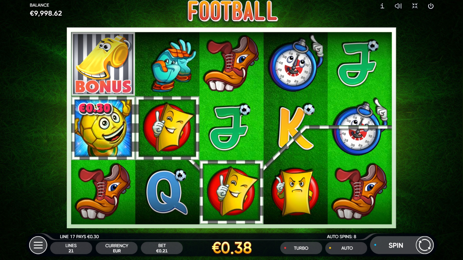 Endorphina koja spaja uzbuđenje nogometa i klasične casino elemente. Smještena na mreži s 5 rola i 3 reda te
