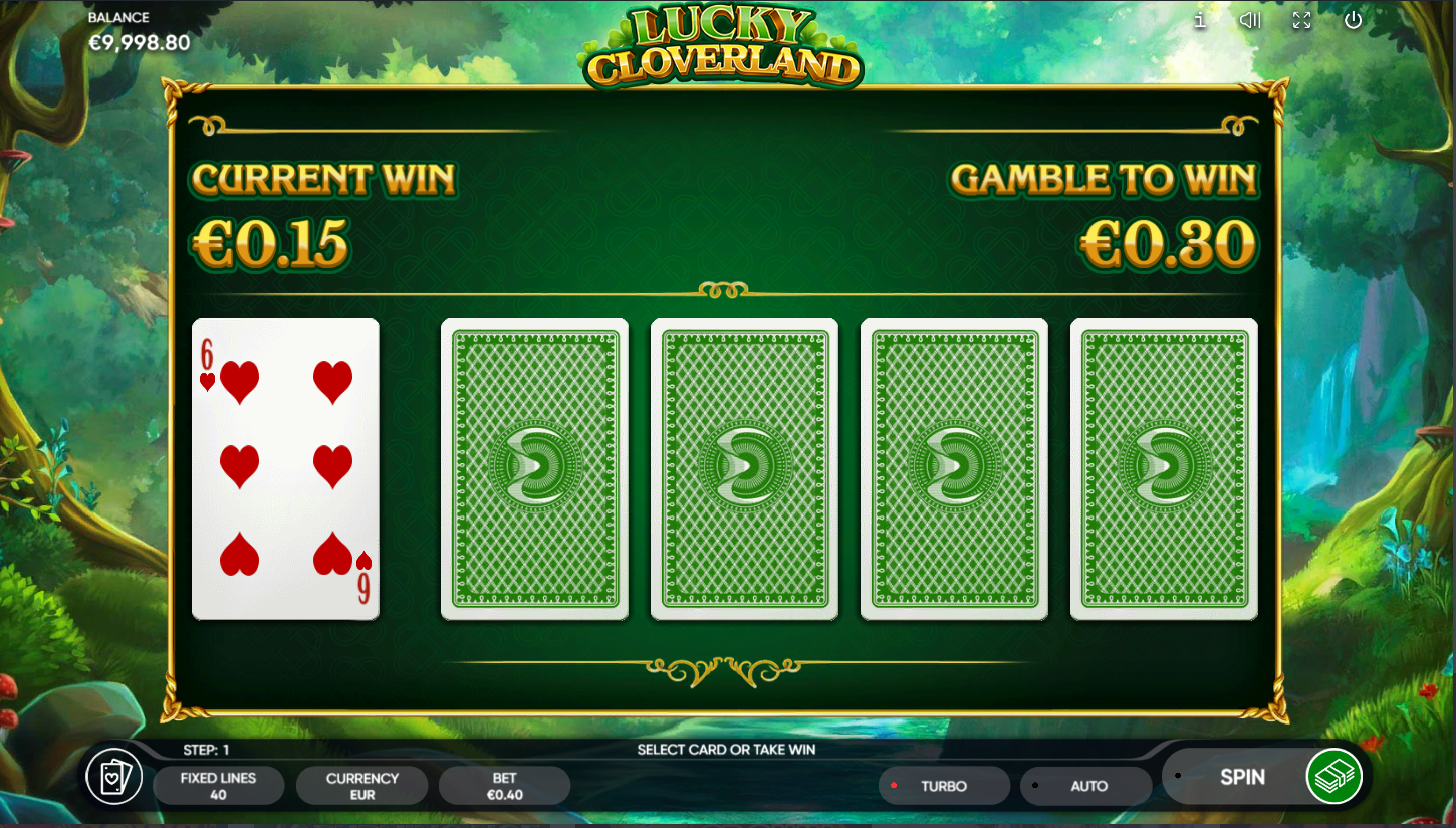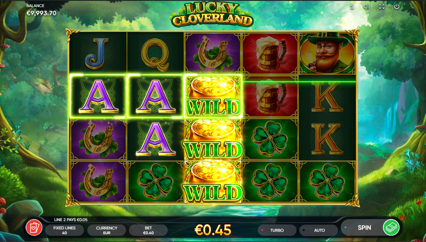 Zavrti kolutove i traži djeteline, potkove i zlatne lonce. Wild se pojavljuje na kolutima 2–4 i zamjenjuje sve simbole osim Scattera. Tri ili više Scatter simbola aktiviraju Free Games, s dodatnim Wildovima za veće šanse. Besplatne vrtnje mogu se ponovno pokrenuti i donijeti još više uzbuđenja. Svaki spin u Lucky Cloverlandu je prilika za eksploziju sreće i nagrada!
