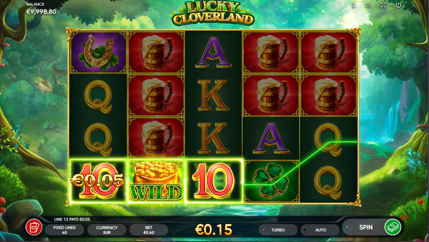 Lucky Cloverland od Endorphine vode te u čarobni svijet djeteline, zlata i sreće! Na 5 kolutova i 40 linija čeka te eksplozija boja i irske čarolije. Pot of Gold Wild simboli pojavljuju se složeno i preplavljuju ekran. Scatteri otključavaju besplatne vrtnje, gdje se sreća uvećava još više. Ako voliš veselu atmosferu i priliku za velike nagrade, ovo je prava zemlja sreće!