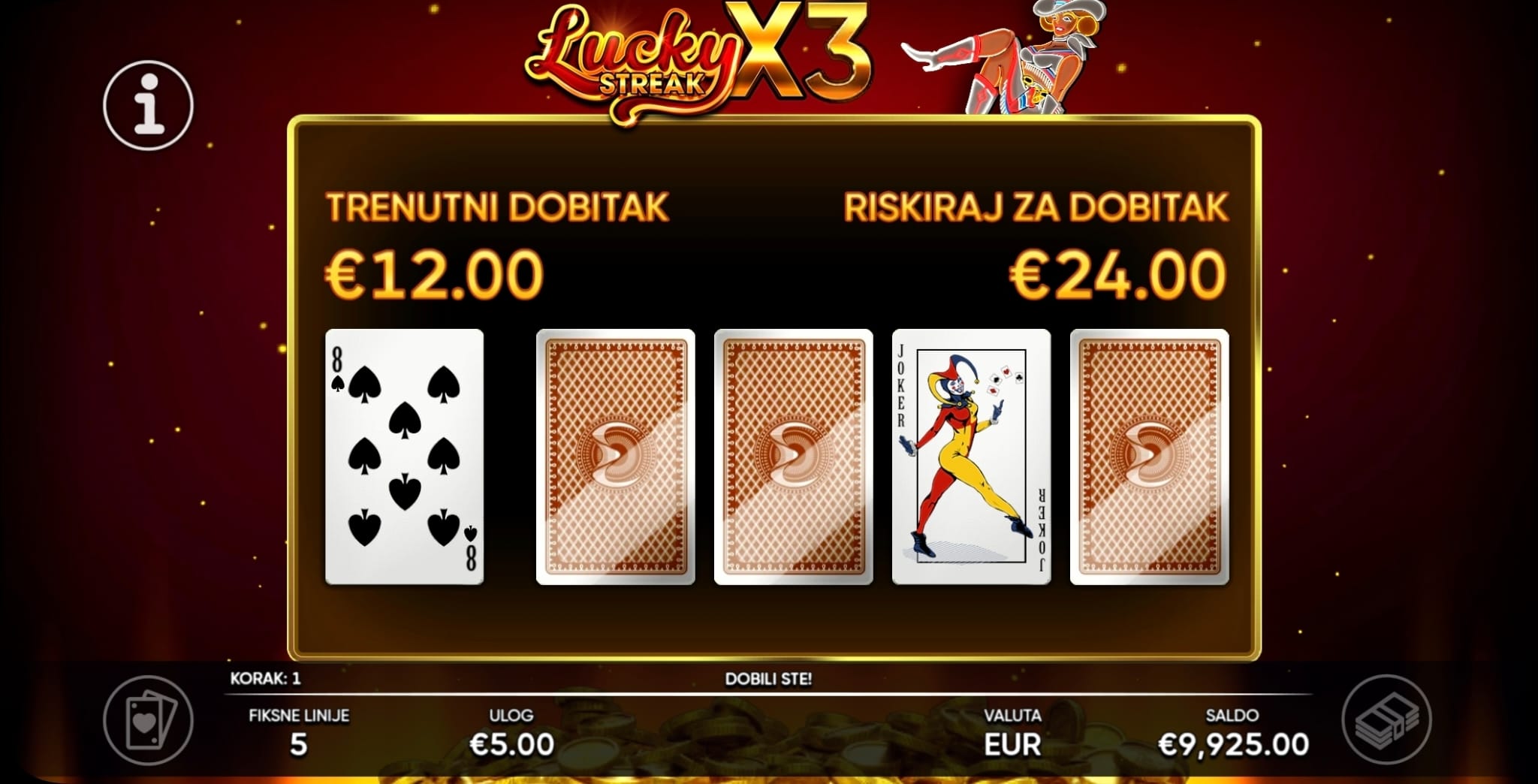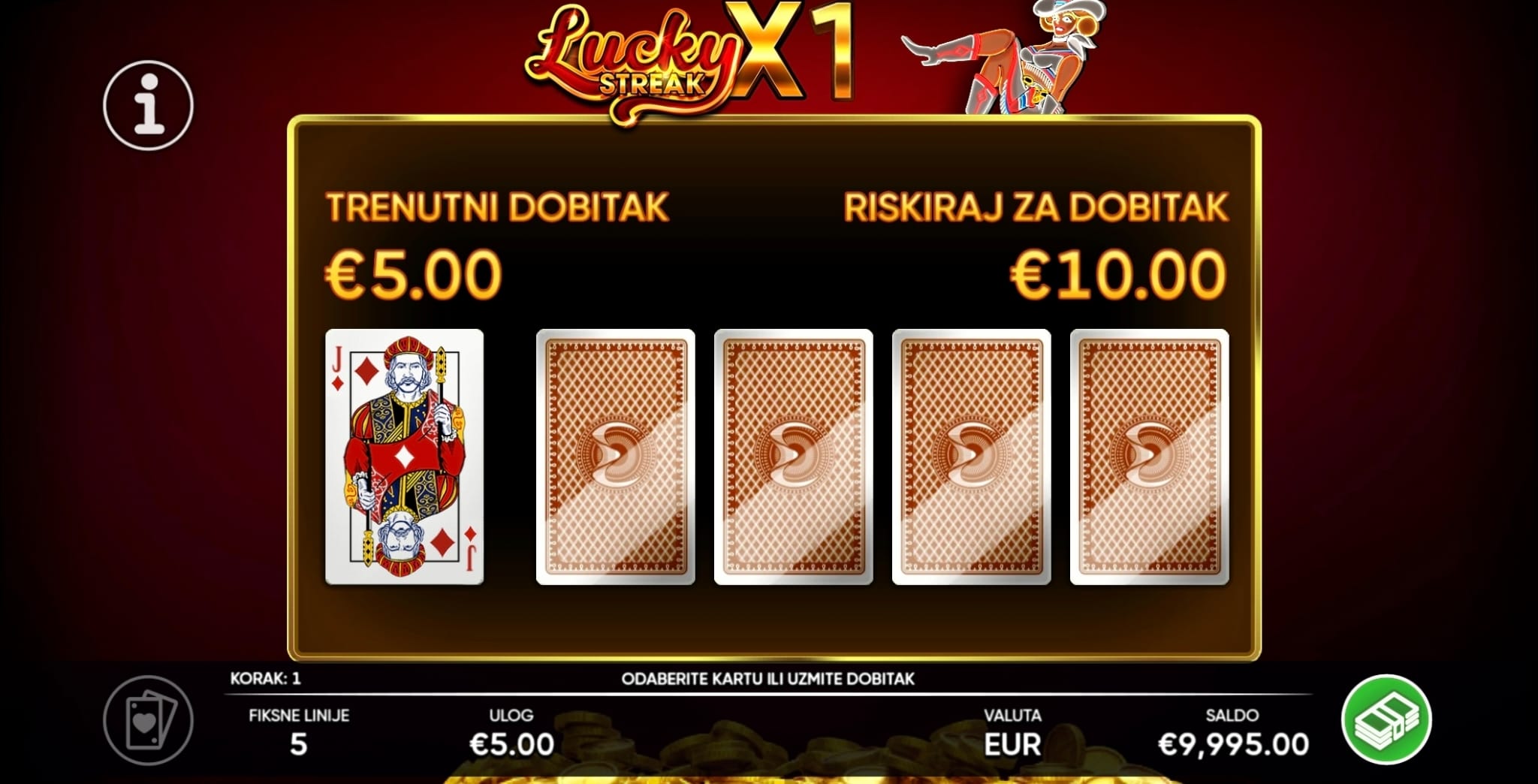 Klađenje: Nakon bilo koje dobitne vrtnje, imate opciju udvostručiti svoj dobitak pogađanjem boje skrivene karte. Ako pogriješite, gubite dobitak, ali ako pogodite, nastavljate s novom šansom za udvostručenje.